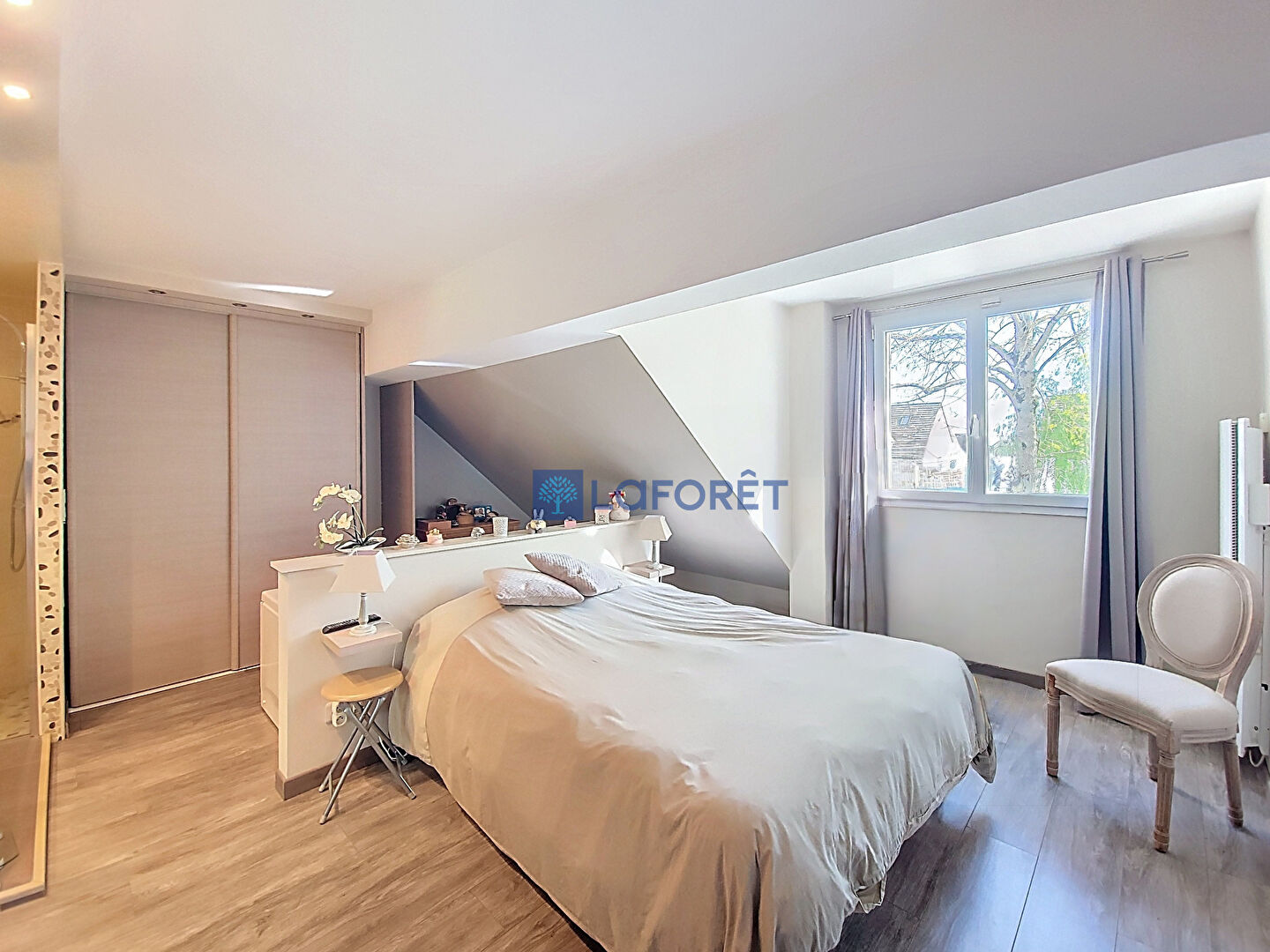 À l'étage, sur dalle béton, l'espace nuit offre trois belles chambres avec rangements, une salle de bains, un WC indépendant, ainsi qu'une suite parentale avec douche, baignoire balnéo et placards.