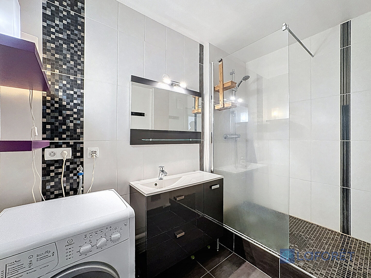 Il se compose d'une entrée avec placard, d'un double séjour lumineux agrandi via l'ouverture d'une ancienne chambre, une simple cloison permet de recréer la deuxième chambre si souhaité, d'une cuisine aménagée avec balcon, d'une chambre, d'une salle d'eau et de WC séparés. Un box est inclus et la copropriété dispose également de plusieurs places de stationnement.