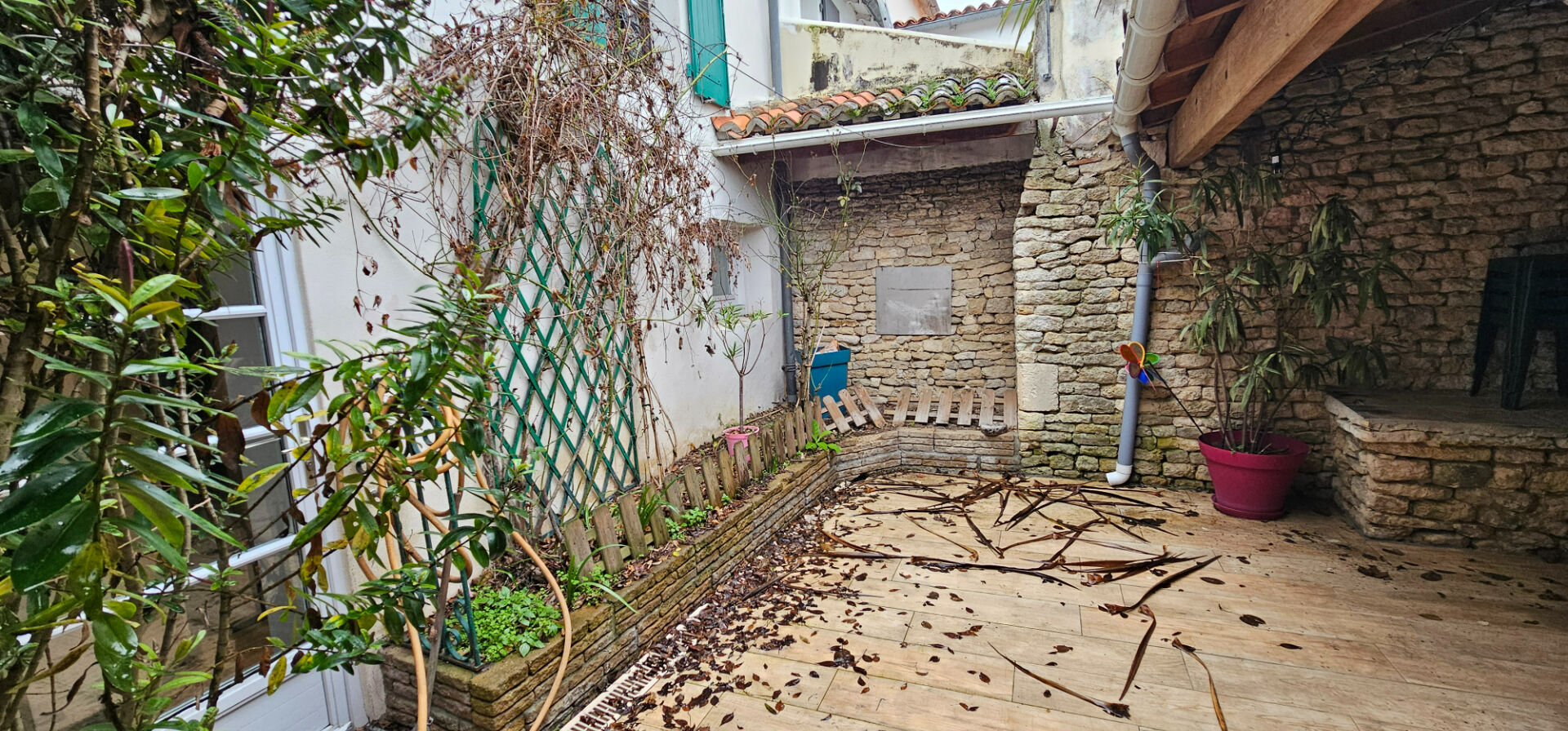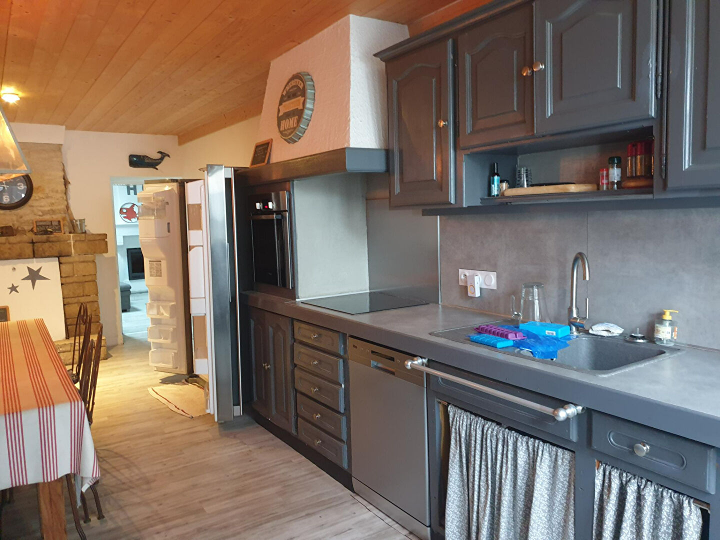 Grande maison de famille comprenant 4 chambres. une belle cuisine aménagée, avec un espace dinatoire, un séjour avec cheminée ouvert sur une cour close. A l'étage quatre chambres, sanitaires. Une cour close avec préau.