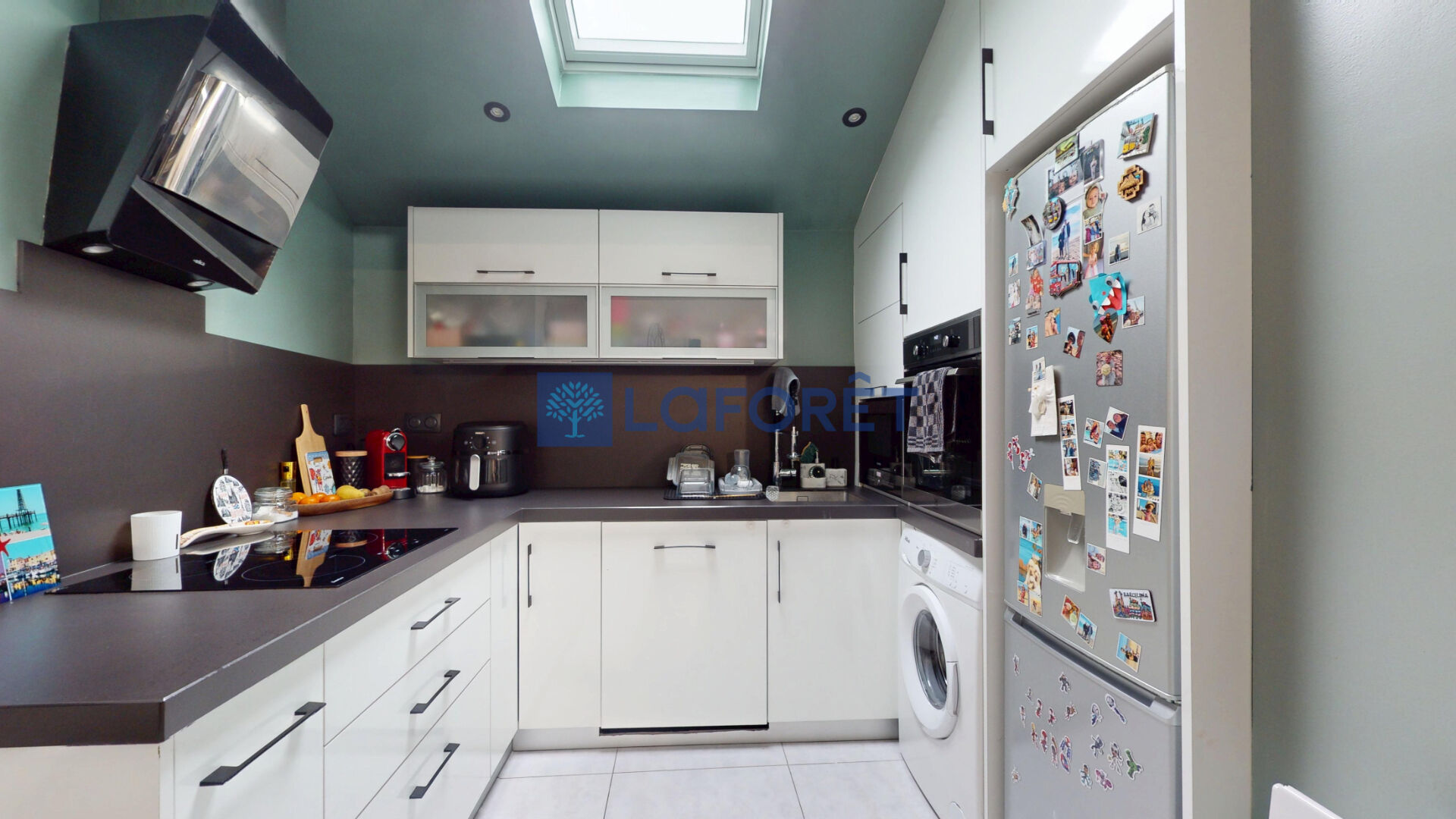 La cuisine moderne, entièrement ouverte, s'intègre harmonieusement à l'espace de vie, créant un ensemble convivial et fonctionnel.