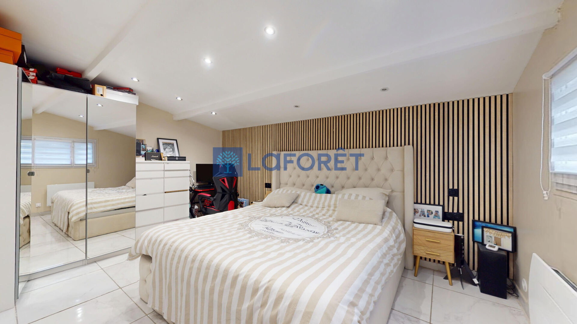 L'espace nuit se compose de deux belles chambres, confortables et bien agencées, ainsi que d'une salle de bains contemporaine avec WC, rénovée avec soin et matériaux de qualité.