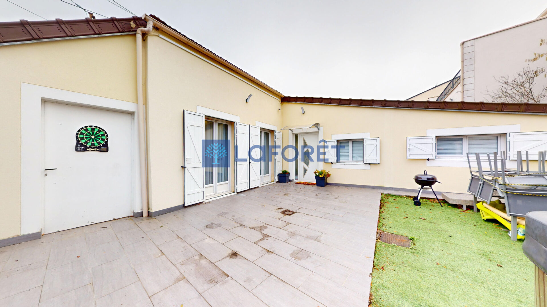 À l'extérieur, la maison dispose d'une agréable terrasse, idéale pour les moments de détente et les repas en plein air.