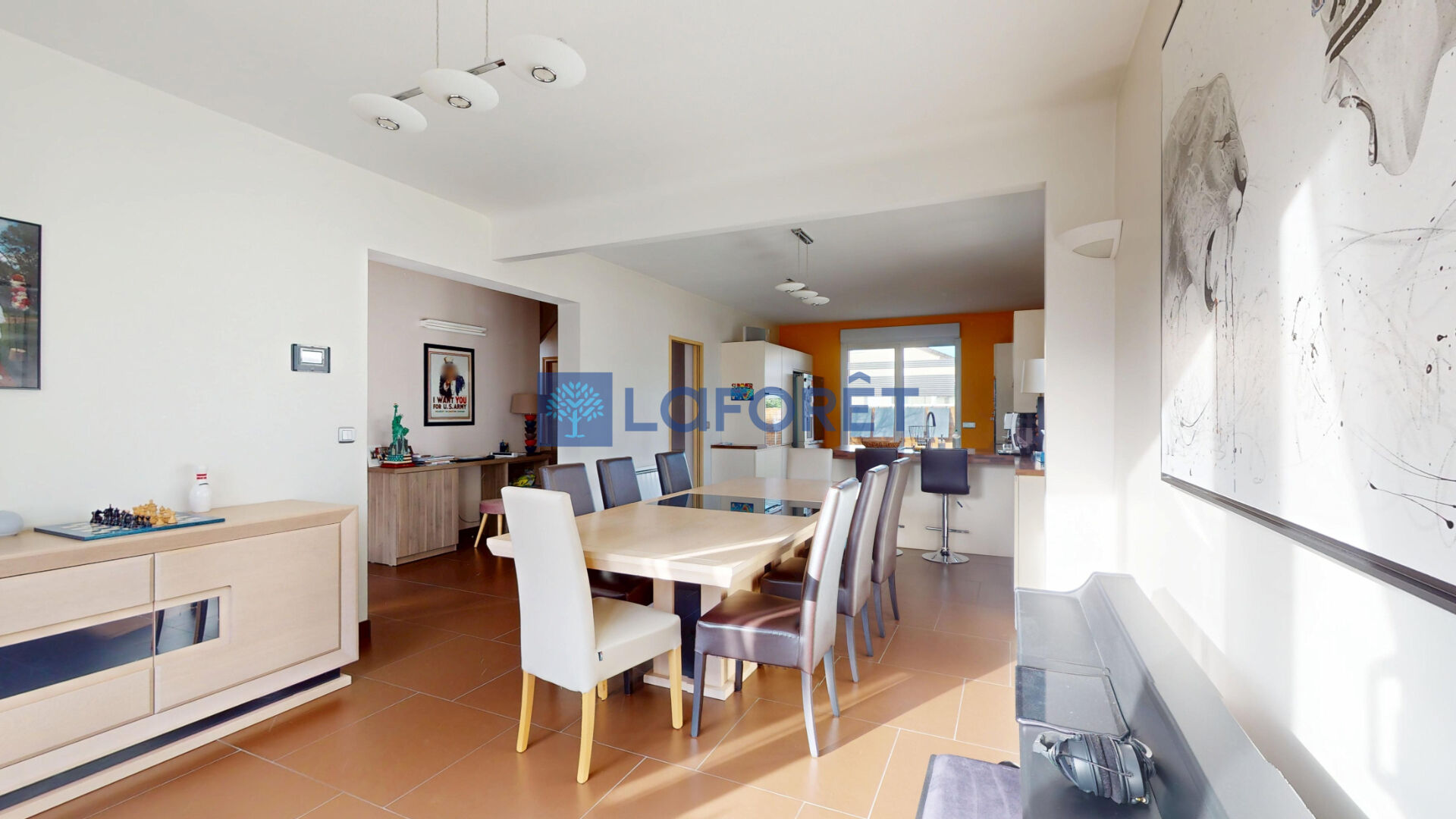 Dès l'entrée, vous serez séduit par une spacieuse pièce de vie traversante, chaleureuse et baignée de lumière, offrant de beaux volumes et une atmosphère conviviale.