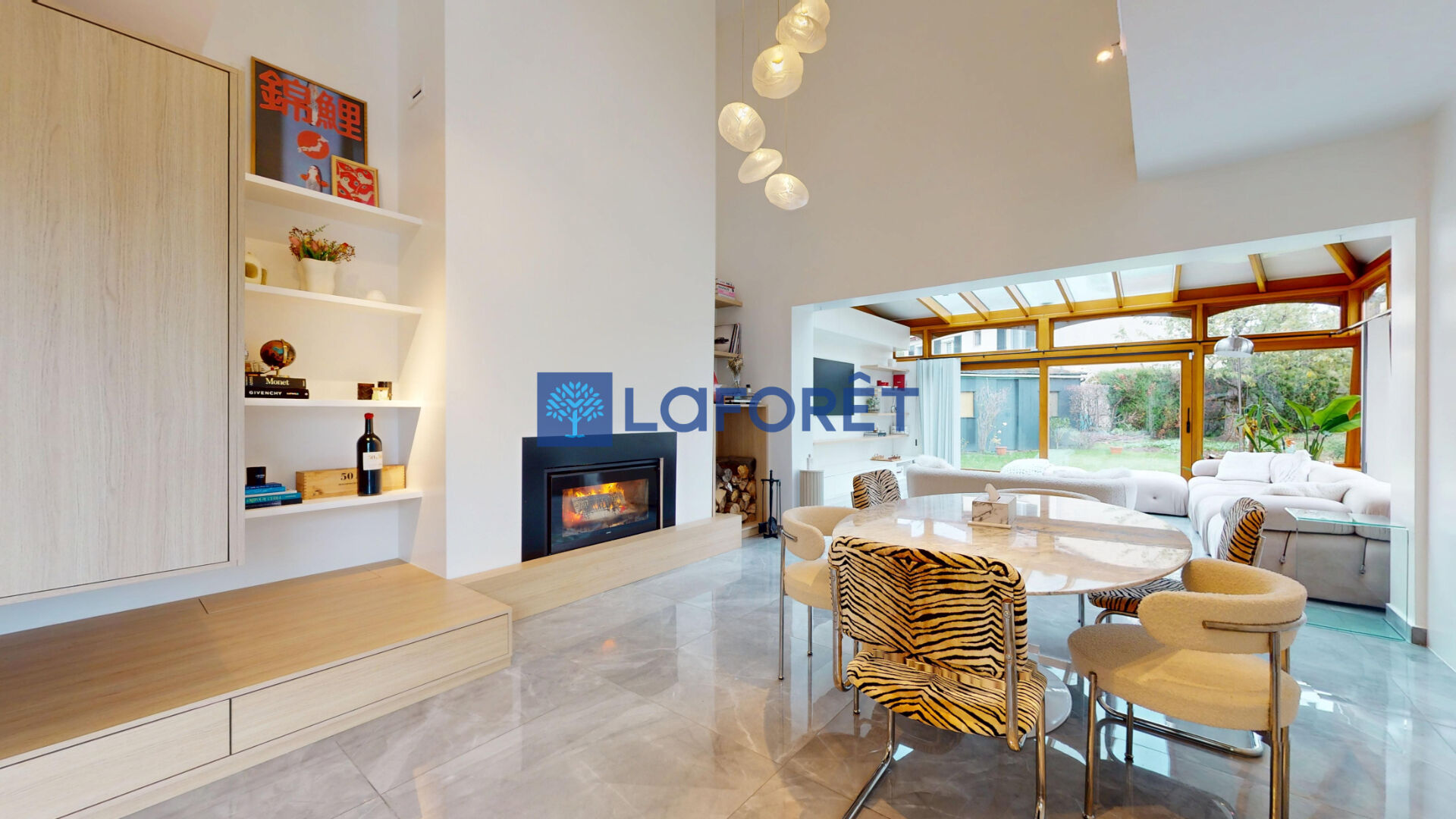 Entièrement domotisée, la maison offre un pilotage intelligent de l'éclairage, du chauffage et des équipements. Les prestations de qualité comprennent mobilier sur mesure, cheminée et matériaux nobles pour un confort raffiné.
