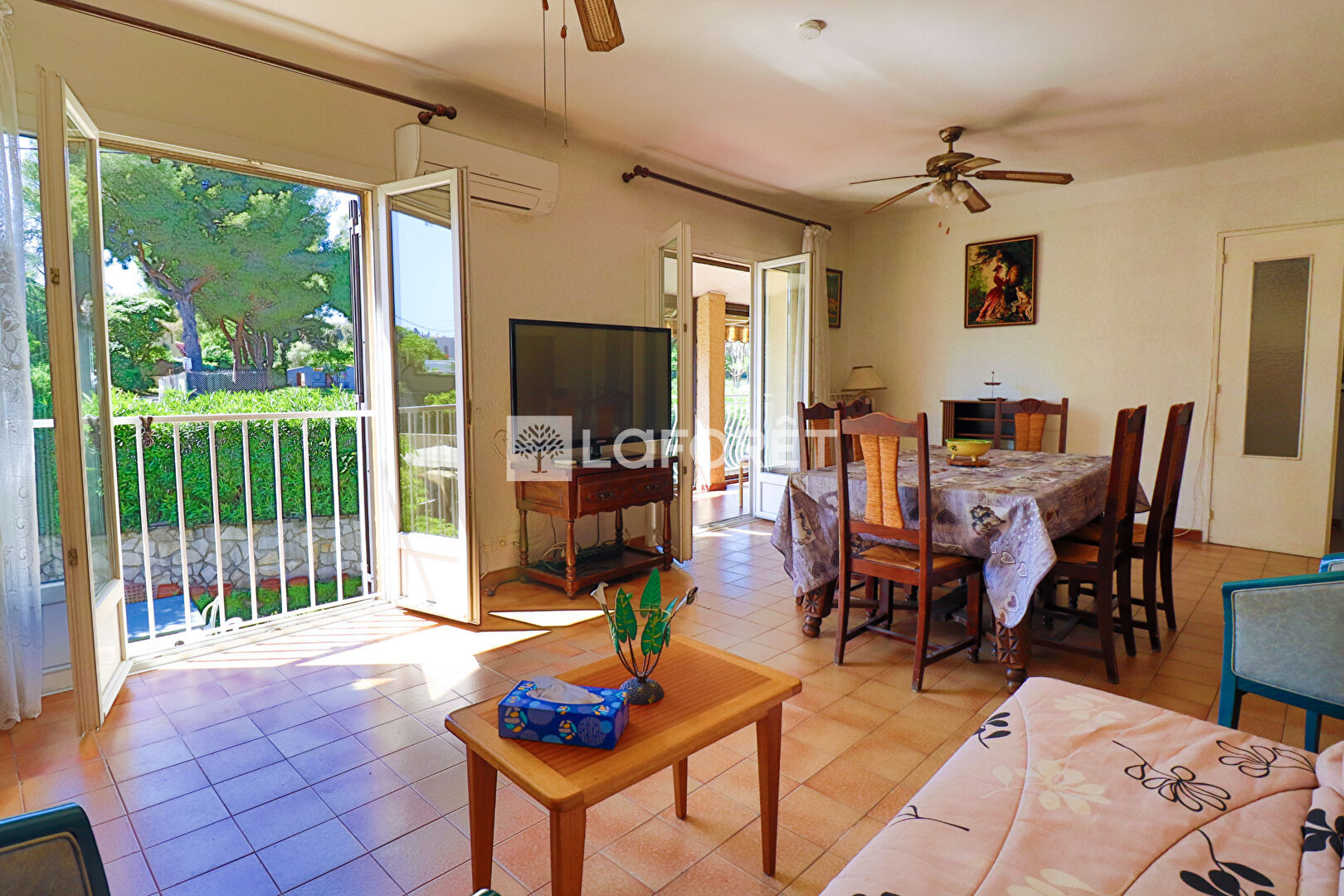 Le bien est climatisé et dispose de 2 garages fermés de 19m² et 21m².