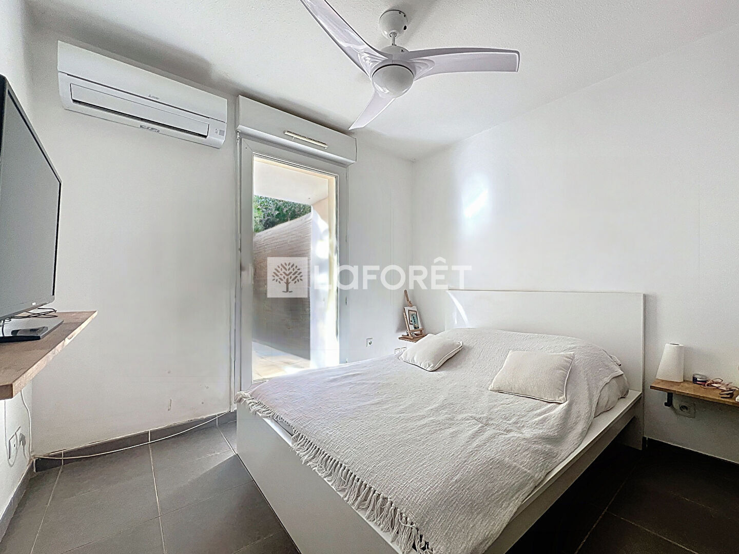 En franchissant la porte, vous découvrirez un grand salon climatisé baigné de lumière, offrant un volume remarquable qui permet différents aménagements : coin TV, espace repas, bureau ou salon détente.