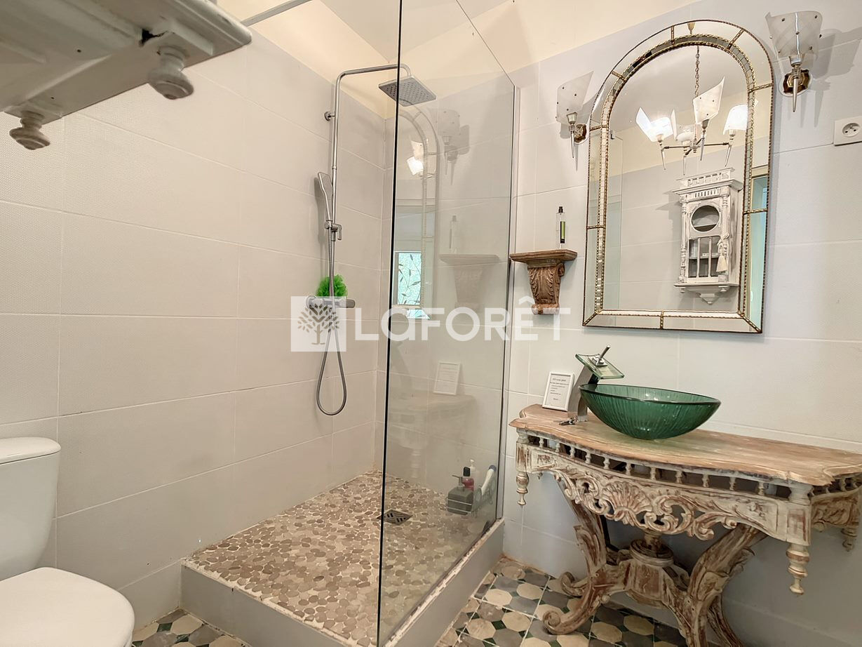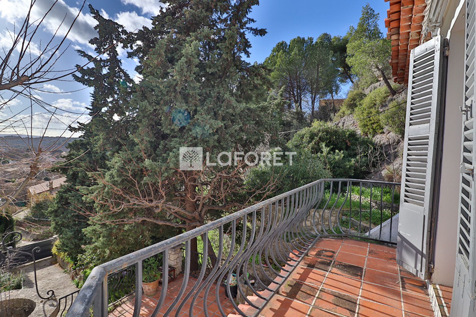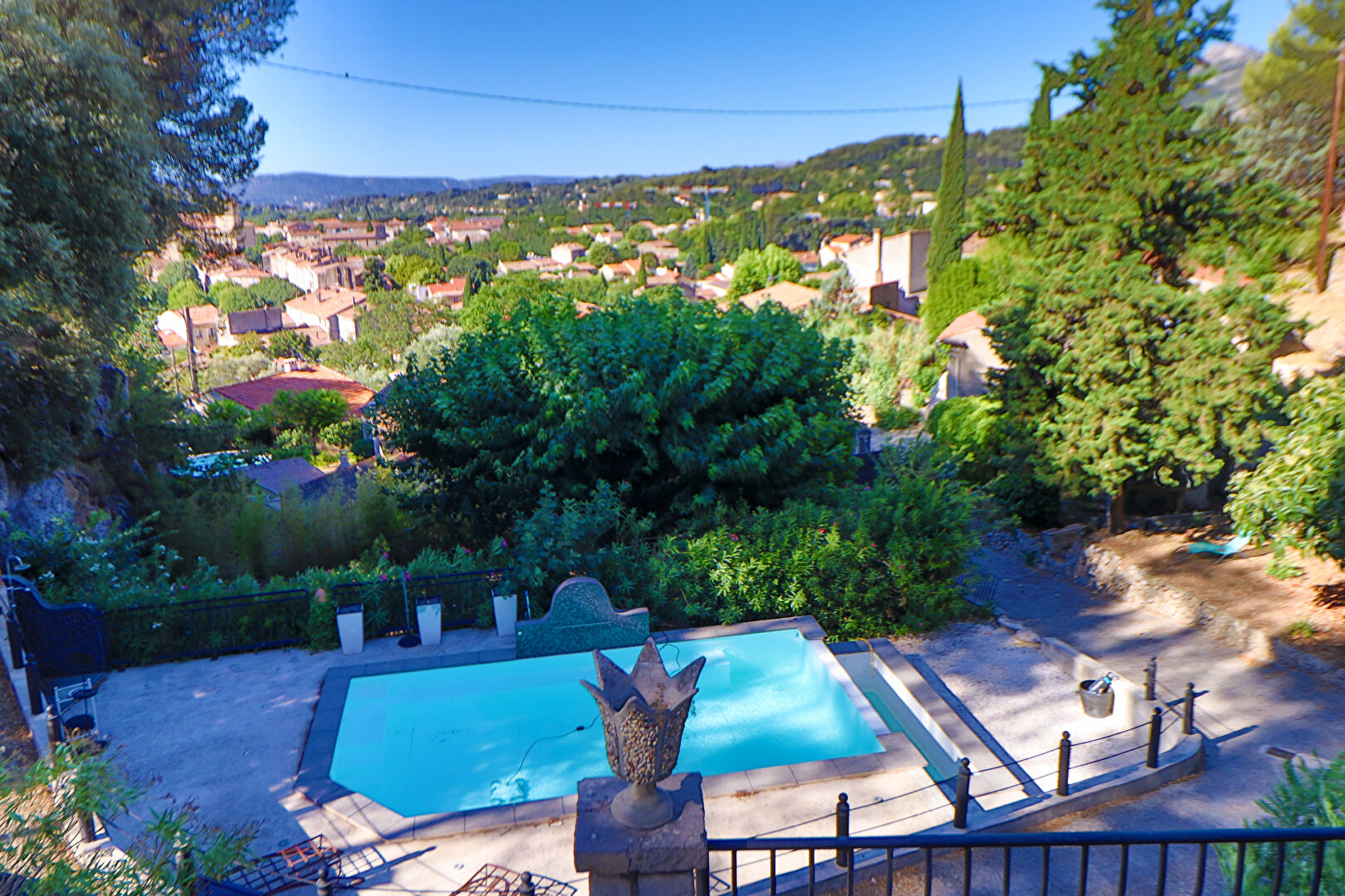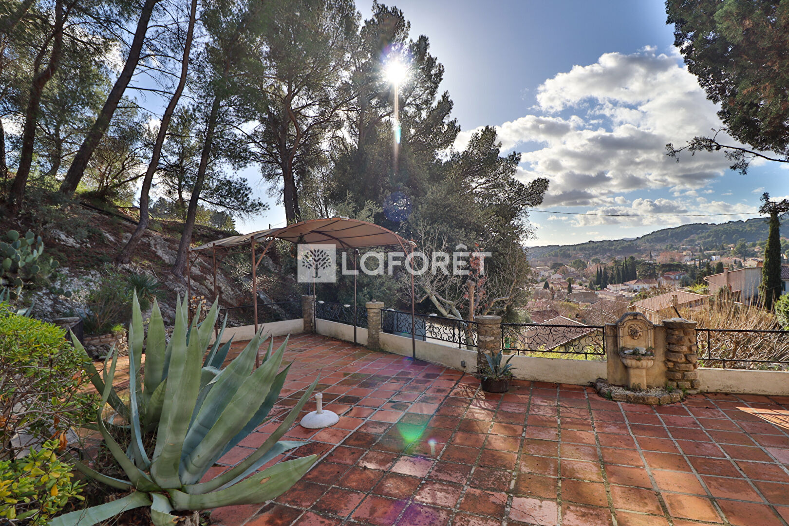 Bâtie sur 2 niveaux , la maison de 230m² est composée d'un grand séjour-salon vouté de 45m², avec une cheminée monumentale. Un escalier en pierre de Cassis amène à mi-niveau vers la cuisine et son office. A l'étage 5 chambres, avec une salle d'eau privative pour chacune. Toutes les pièces ouvrent sur les terrasses de la bastide, la pinède et le massif du Garlaban. Une belle piscine, un garage fermé, et un parking 5 voitures permettent d'envisager une activité de chambres d'hôtes ou gites. Un type 2 de 40m² indépendant jouxte la maison. le terrain de 3,5 ha aménagé en restanques et en espaces naturels, procure à ce bien d'exception un cachet exceptionnel.