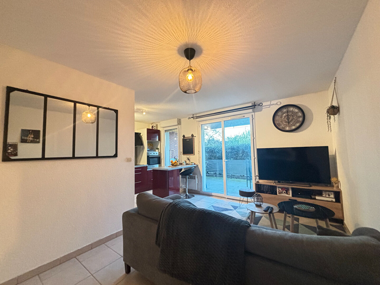 Il se compose d'une entrée avec placard, d'une cuisine équipée et aménagée donnant sur une pièce de vie avec un accès direct à une belle terrasse et son jardin clôturé. Il offre également deux chambres avec grands placards, une salle de bains, et un WC séparé.