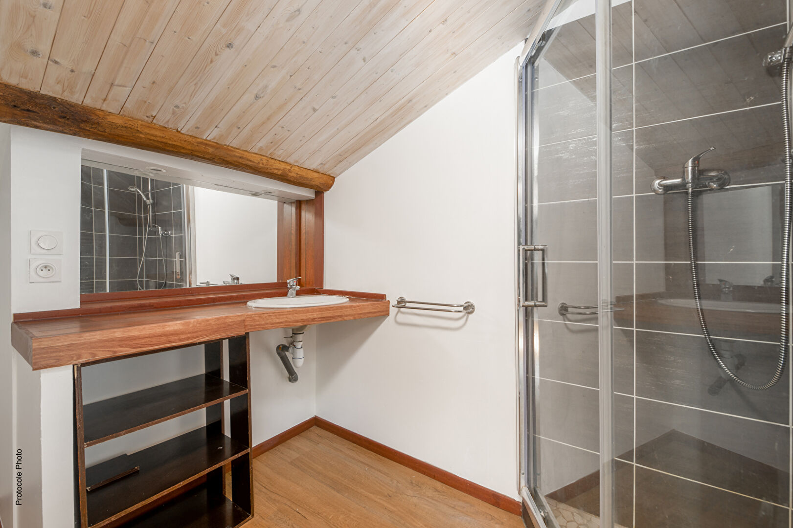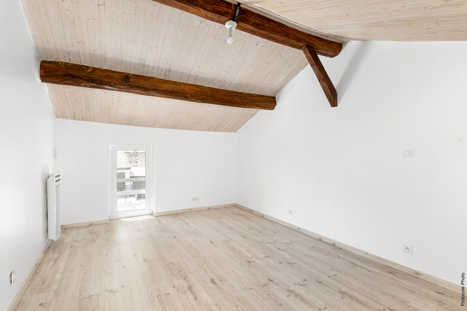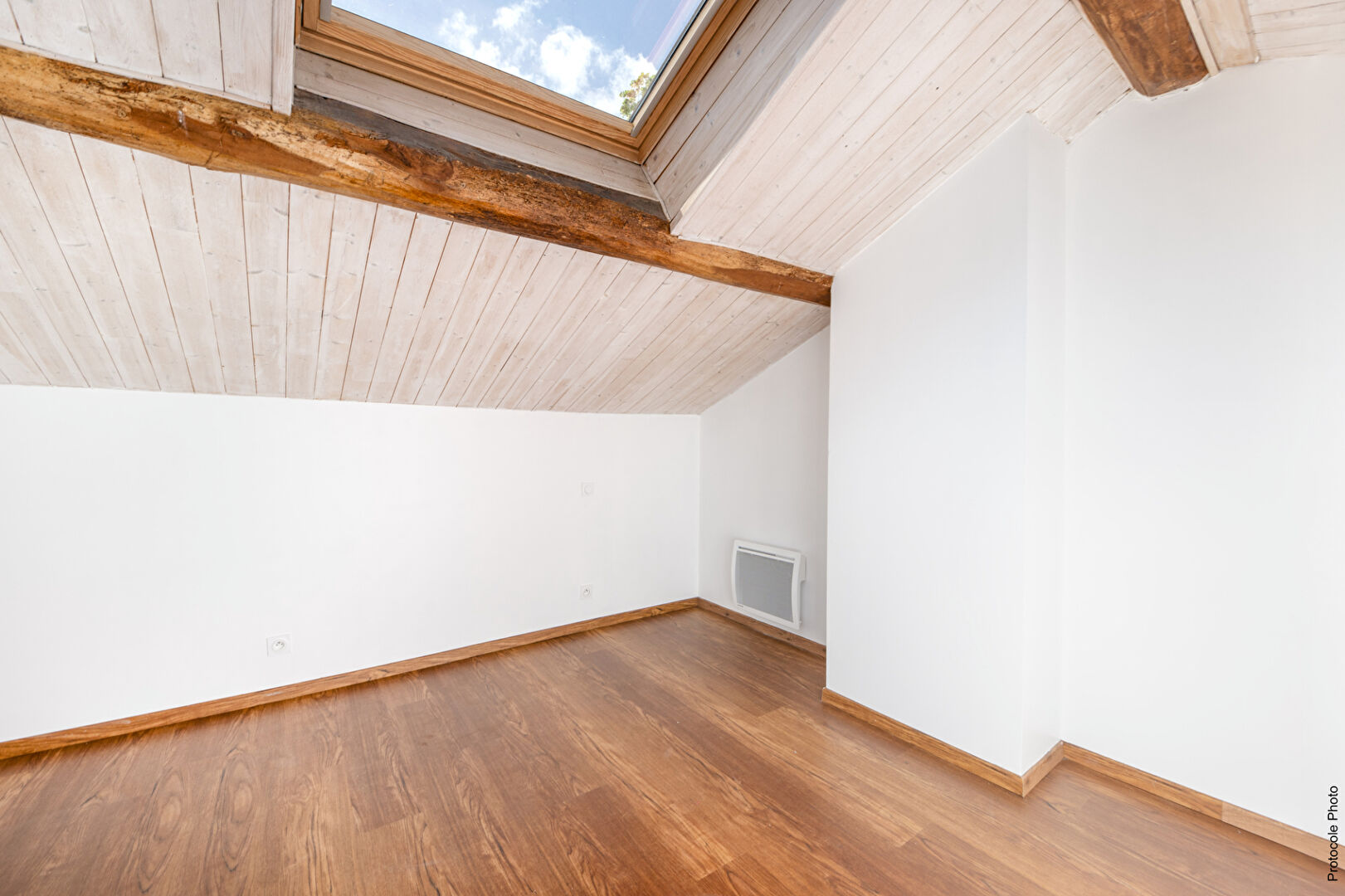 Au rez-de-chaussée, une pièce de vie lumineuse avec cuisine ouverte permet de profiter d'un espace convivial. À l'étage, deux chambres avec poutres apparentes apportent du caractère et une ambiance chaleureuse, vous y trouverez aussi une salle d'eau, un wc et un coin bureau.