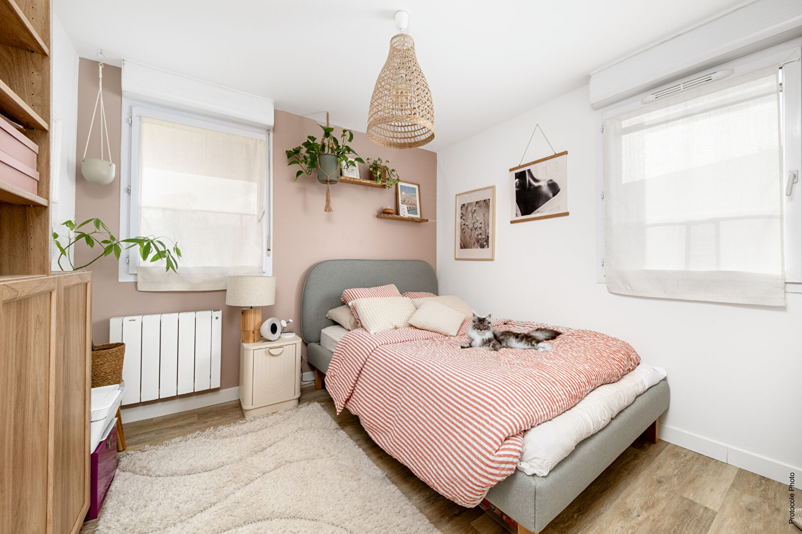L'espace nuit se compose de deux chambres agréables avec placards aménagés, d'une salle de bains moderne et de rangements astucieux, pensés pour votre quotidien.