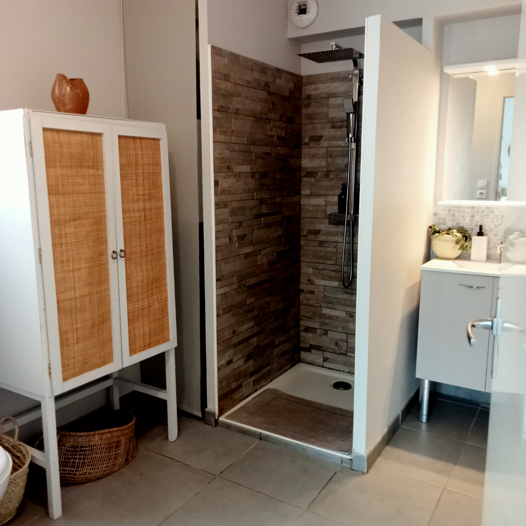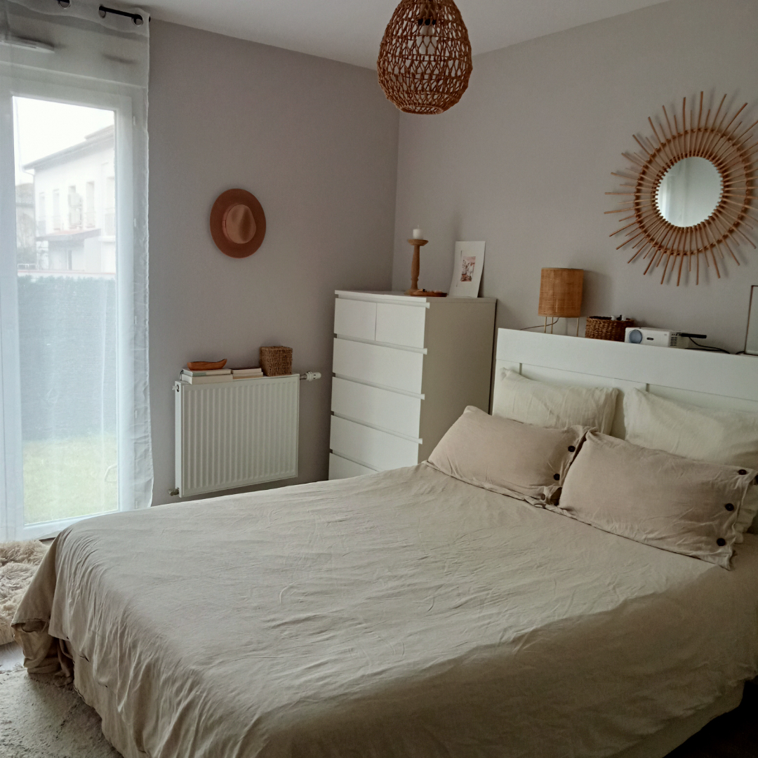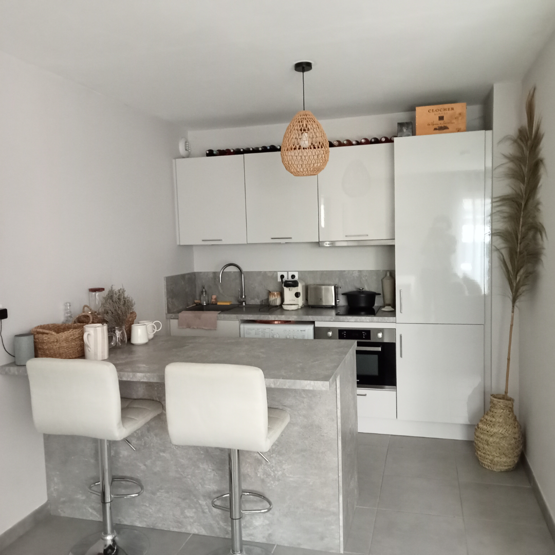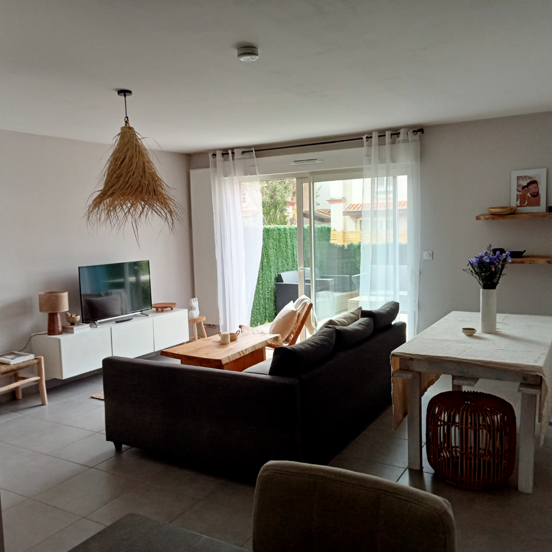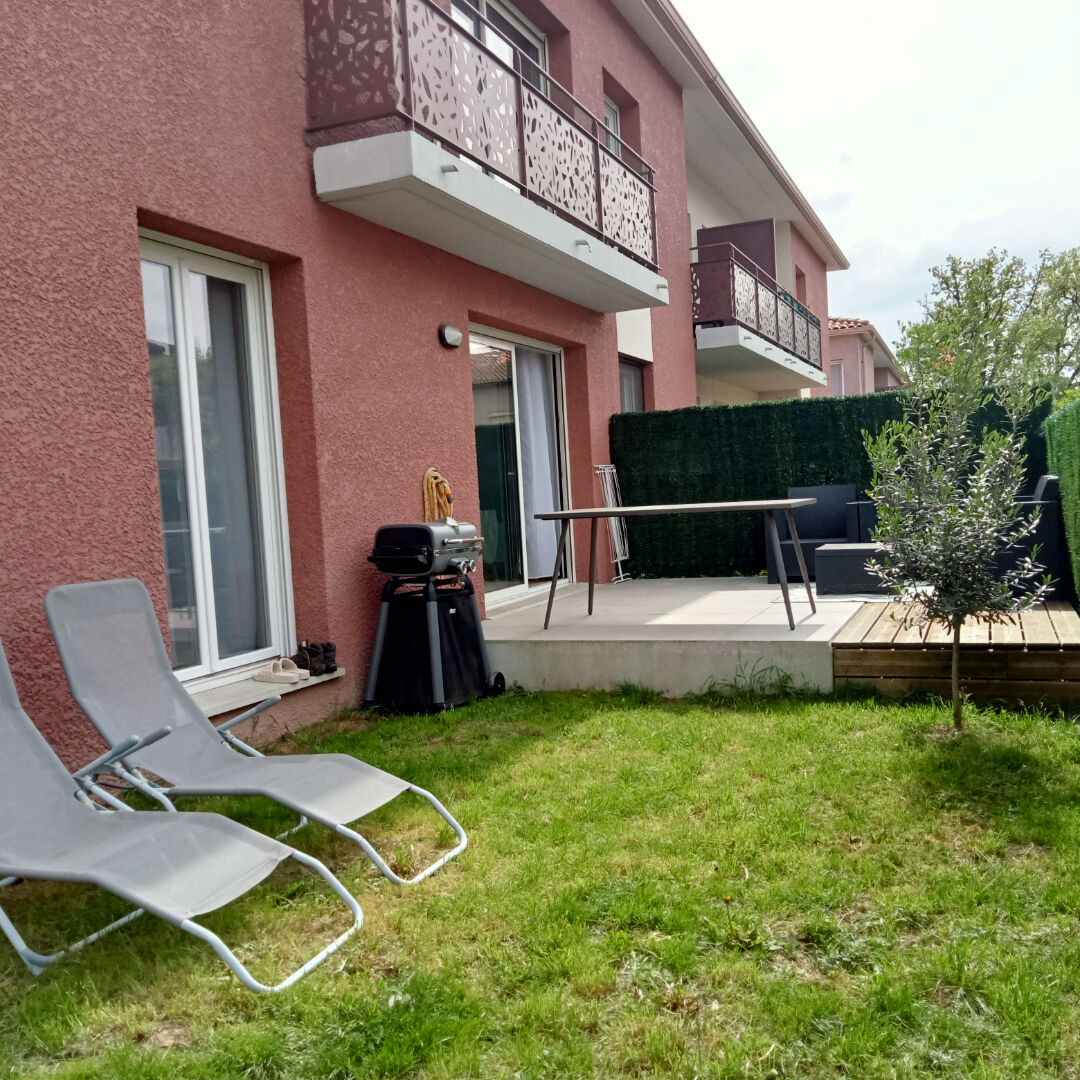 Au coeur de la commune tout à pied ! Commerces, bus, écoles, administrations. Superbe appartement T2 - meublé d'une superficie habitable de 51.5M² , donnant sur une grande terrasse et jardinet. Belle pièce à vivre avec cuisine US équipée et aménagée avec électroménager complet et de qualité ( Four /Micro onde, Lave-linge/sèche-linge, Réfrigérateur/Congélateur, plaque vitro.). Attenant une chambre de 12M2 avec rangements . Salle d'eau, douche italienne, meuble vasque. Chauffage gaz. Mobilier de qualité et de bon goût en parfait état. En complément deux places de stationnement en sous-sol.