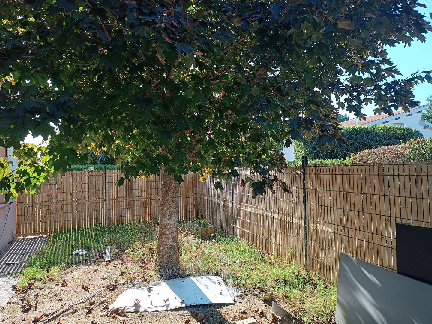 Un jardin privatif clôturé et deux places de parking en extérieur accompagnent le logement.