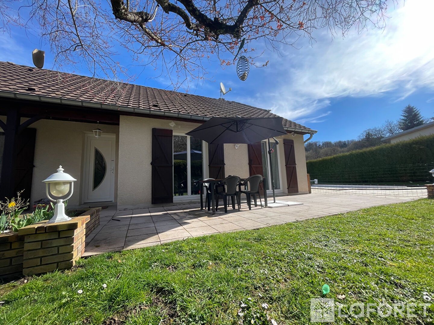 -Terrain arboré avec piscine et une grande terrasse.