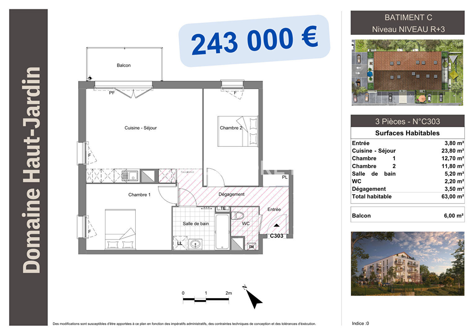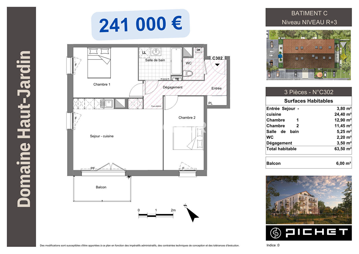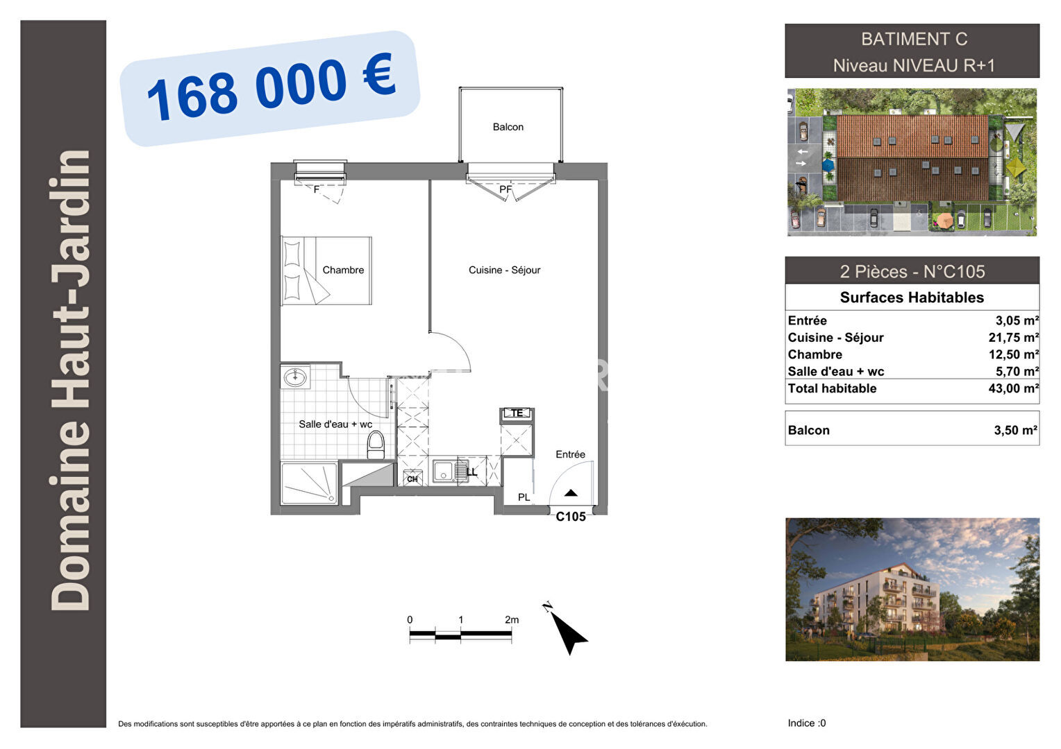 Pour ce lot, nous vous proposons un appartement de type T2 réf. C 204 au 2ème étage avec ascenseur d'une surface habitable de 41 m2. Il est composé d'un hall d'entrée avec placard, séjour-cuisine, une chambre, une salle d'eau/wc, avec un balcon. Le tout accompagné d'une place de parking extérieure. Si ce plan intérieur ne vous convient pas, voir les autres plans intérieurs en faisant défiler les lots restants situés aux 1er, 2ème, 3ème et 4ème étage)...