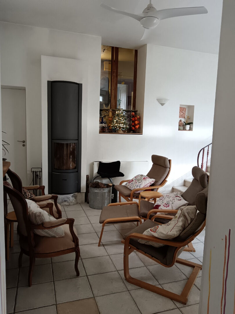 Au rez-de-chaussée: Entrée, salle d'eau, chambre, bureau, salon, salle à manger.