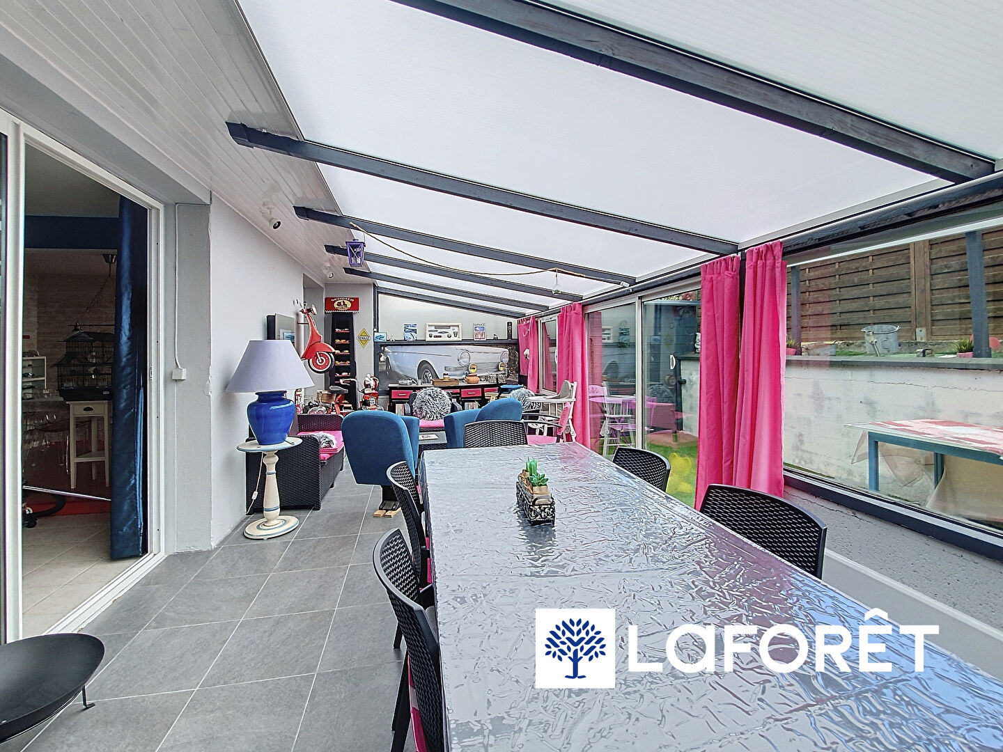 La maison est composée au rez-de-chaussée d'une entrée desservant une cuisine récente aménagée et équipée, un séjour- salon donnant accès à une grande véranda exposée Sud de plus de 25 m²;