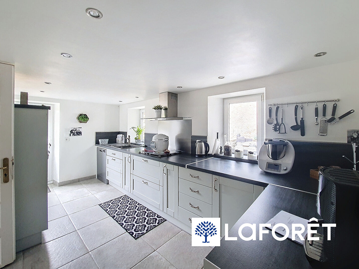Vous disposerez au rez-de-chaussée d'une cuisine aménagée et équipée récente, d'une pièce de vie de près de 50 m² avec une cheminée insert, d'une salle à manger avec un bar en pierres, d'une vaste salle de bains avec douche et baignoire, d'une salle de sport de plus de 25m² pouvant également offrir une vie de plain pied, d'une chaufferie et d'un cellier.