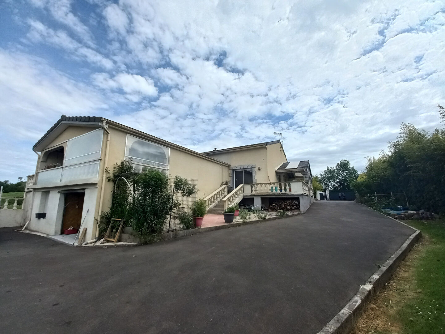 Cette maison possède deux grandes terrasses carrelées, un sous-sol partiel avec garage, un carport et un hangar.