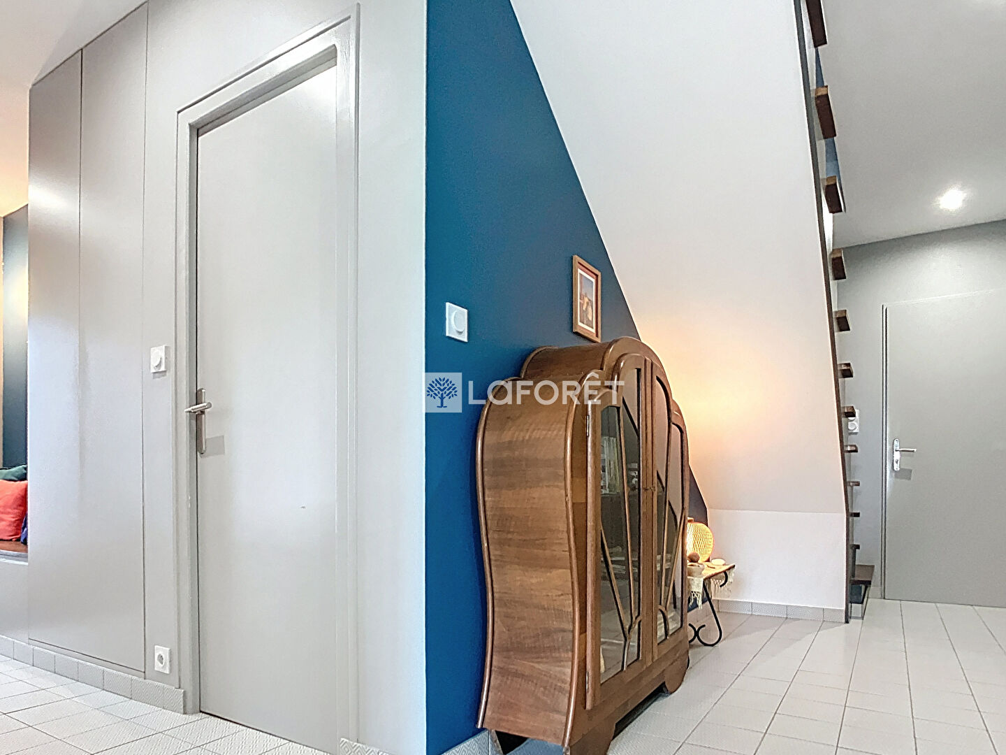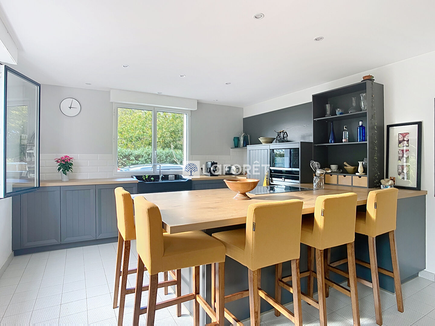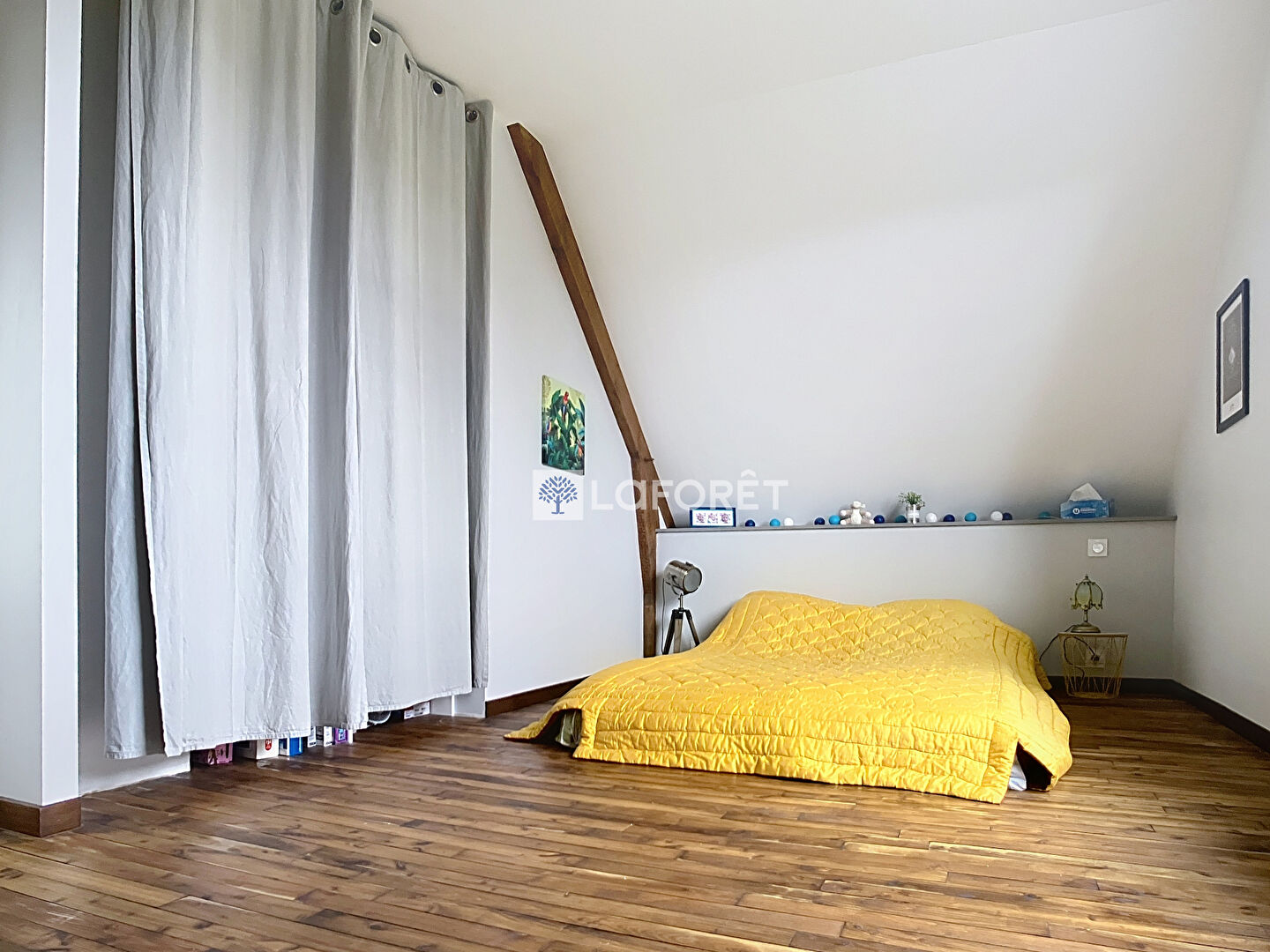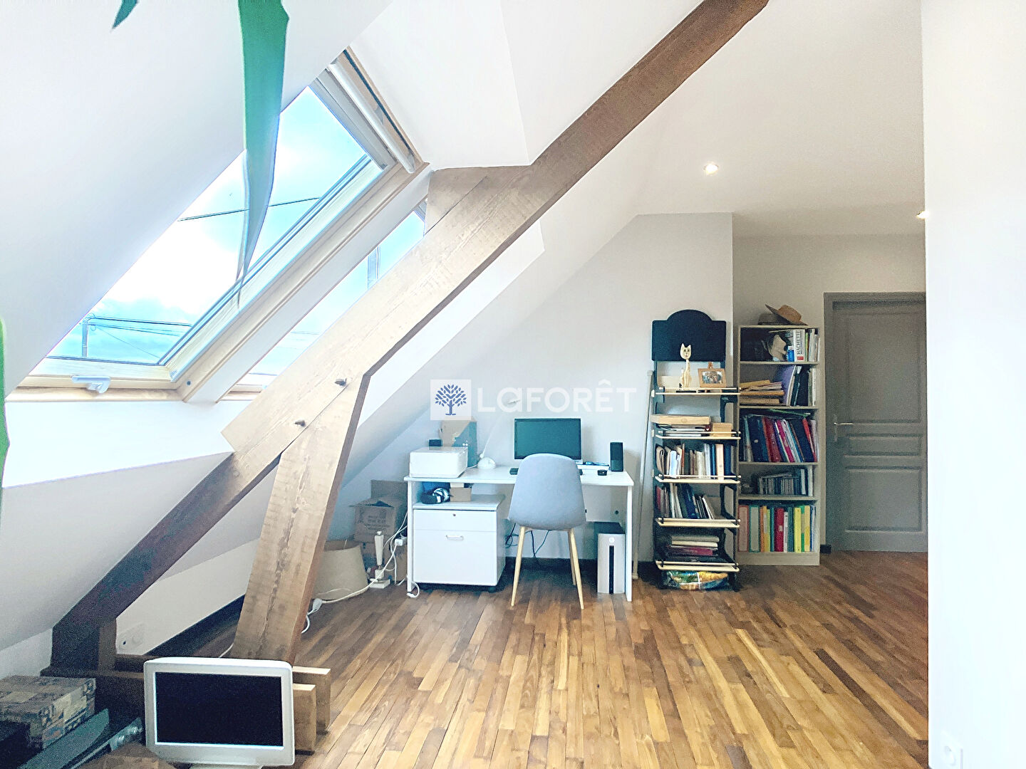 À l'étage, une spacieuse mezzanine baignée de lumière dessert deux grandes chambres avec , une salle de bains avec douche et baignoire, un WC séparé et un dégagement servant de rangements. À l'extérieur, un grand cabanon de jardin vient compléter cet ensemble, offrant un espace supplémentaire de stockage.