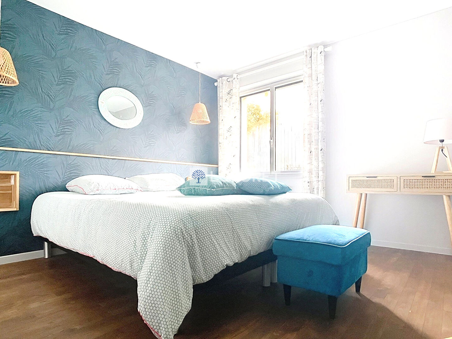 Au rez-de-chaussée, vous découvrirez une belle entrée avec de nombreux rangements, un salon-séjour lumineux exposé plein Sud avec sa cuisine ouverte entièrement équipée, ainsi que deux chambres dont une suite parentale avec salle d'eau privative. S'ajoutent un WC séparé et une buanderie disposant d'un double accès depuis le garage et l'intérieur de la maison.