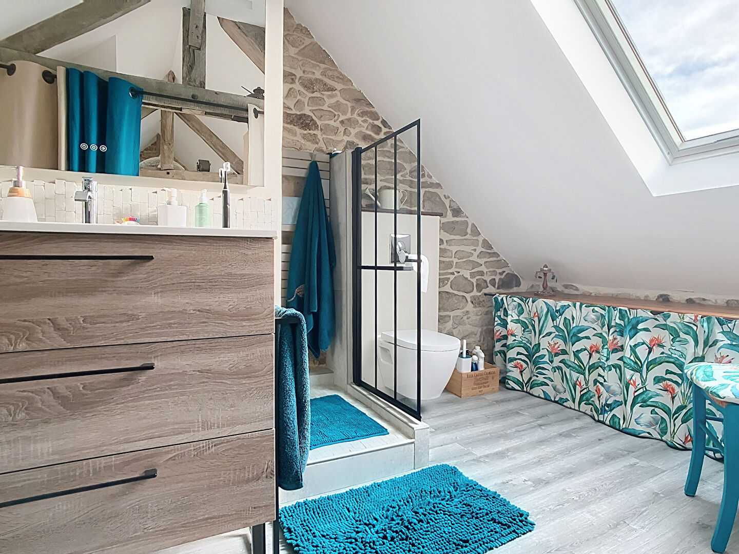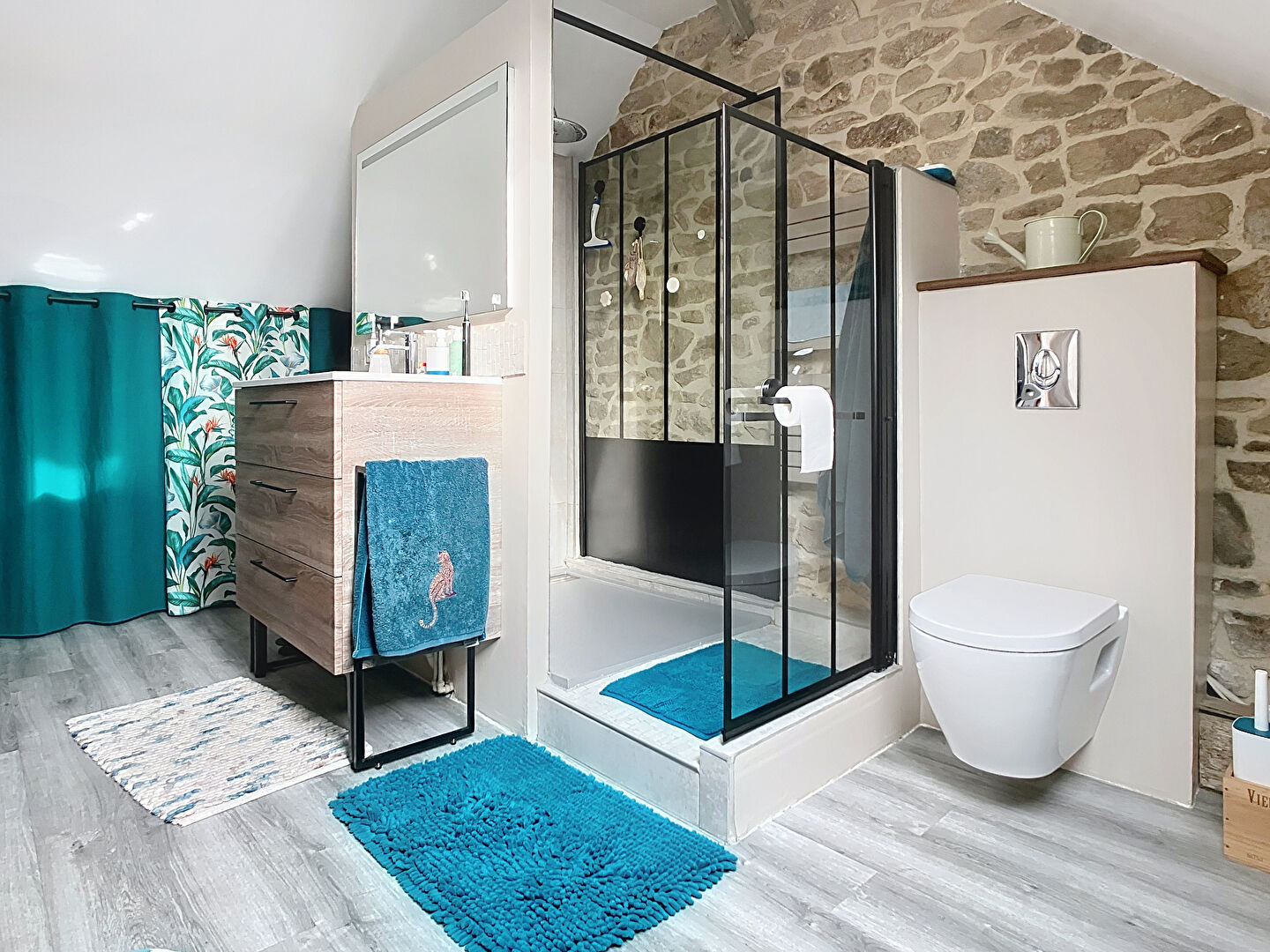 Ce bien dispose également à l'étage d'une suite parentale avec salle d'eau, wc ,2 chambres, 1 dressing et une salle de bain avec wc.