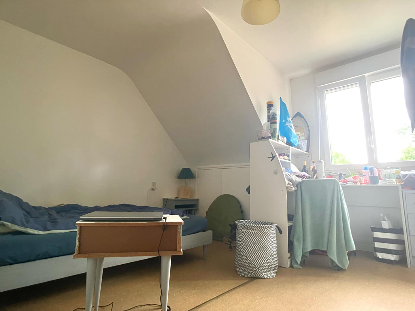 Les premier et deuxième étages accueillent actuellement une colocation spacieuse et bien agencée, composée de quatre chambres, d'un salon convivial, d'une salle de douche, d'un WC et de deux greniers facilement aménageables. De nombreux espaces de rangement complètent l'ensemble.