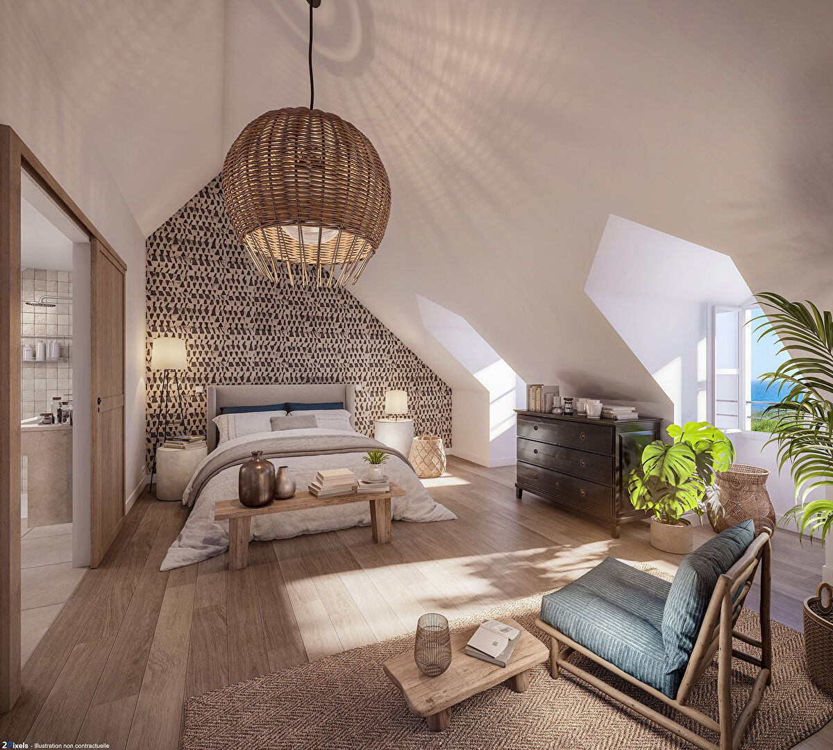 Belle-Île-en-Mer - Le Palais - A 500 mètres de la Plage, appartement en duplex composé au rez-de-chaussée, d'une entrée, d'une pièce de vie donnant sur un balcon , d'un dégagement, de deux chambres, d'une salle de bains et WC , à l'étage, d'un dégagement, d'un bureau, d'une chambre et d'une salle d'eau avec WC.