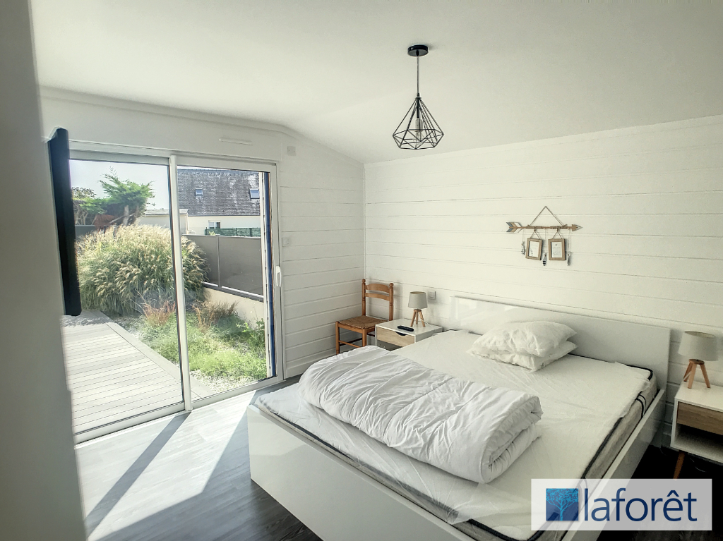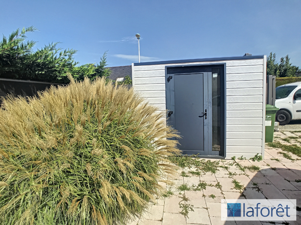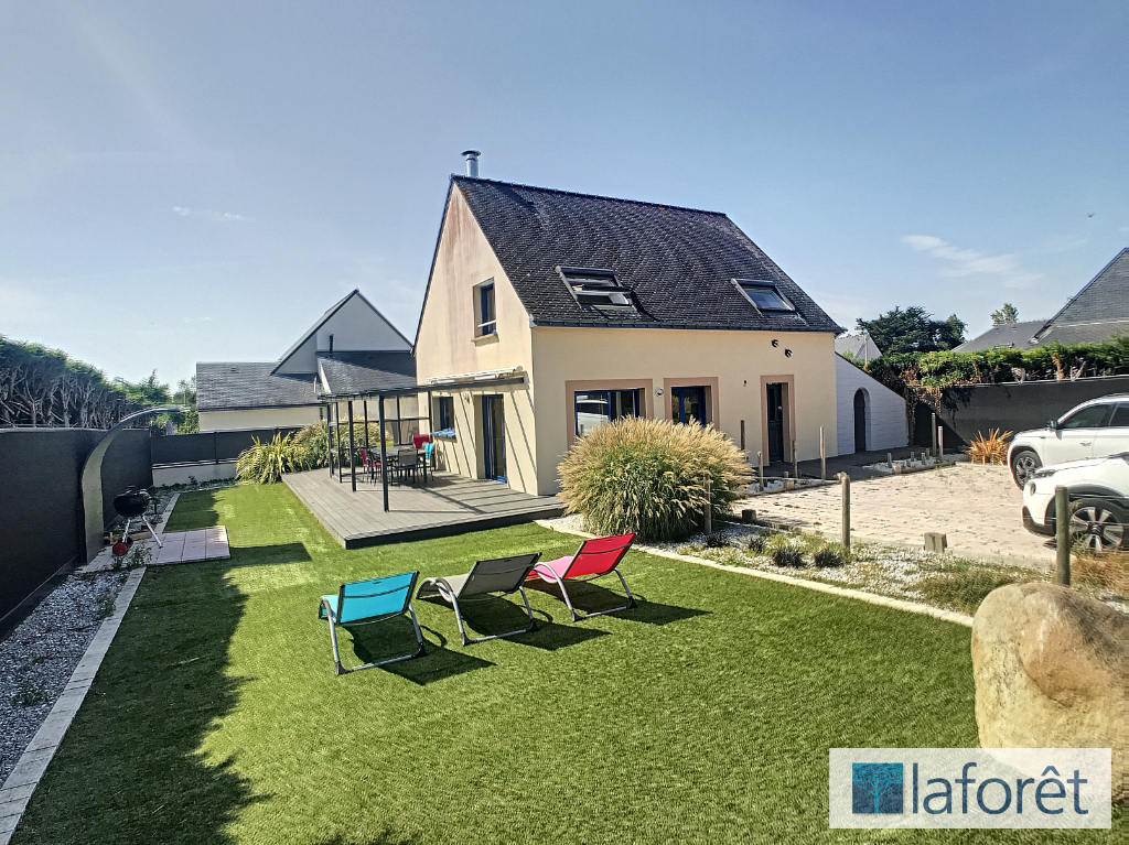 A l'extérieur grande terrasse en composite et sa pergola, jardin paysagé.