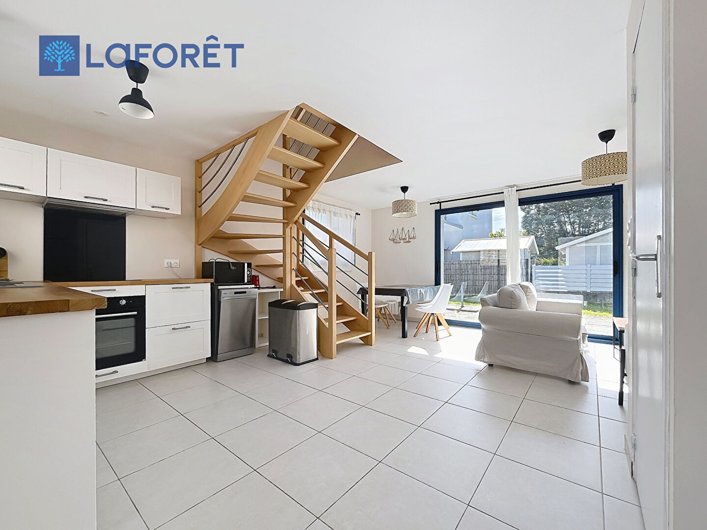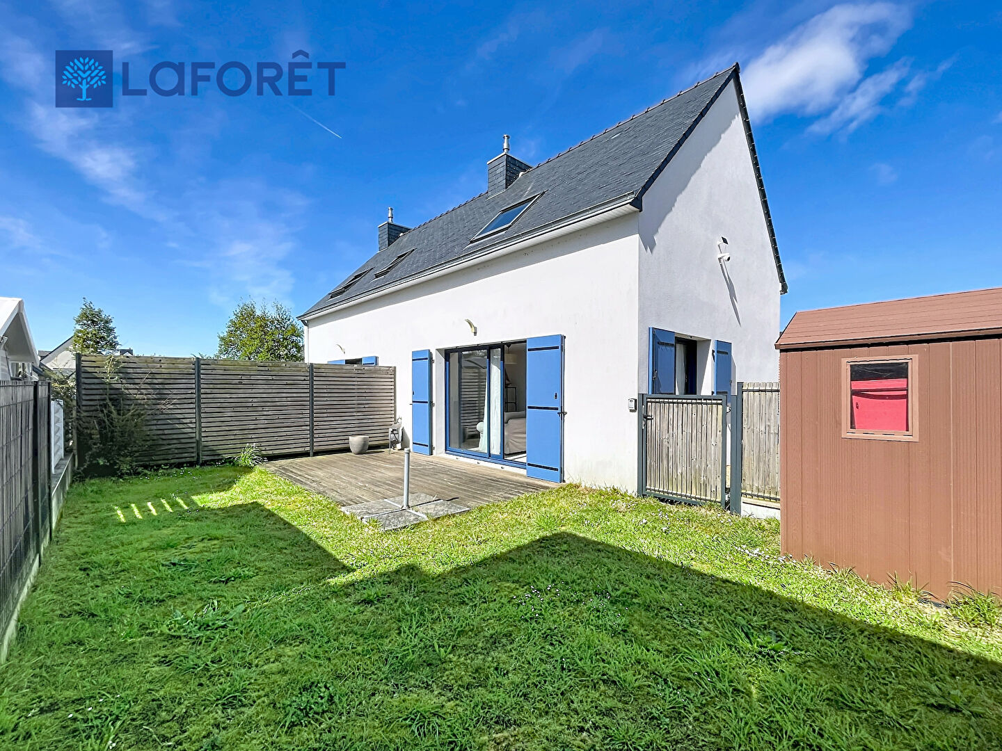 Terrasse et jardin clos avec abri.