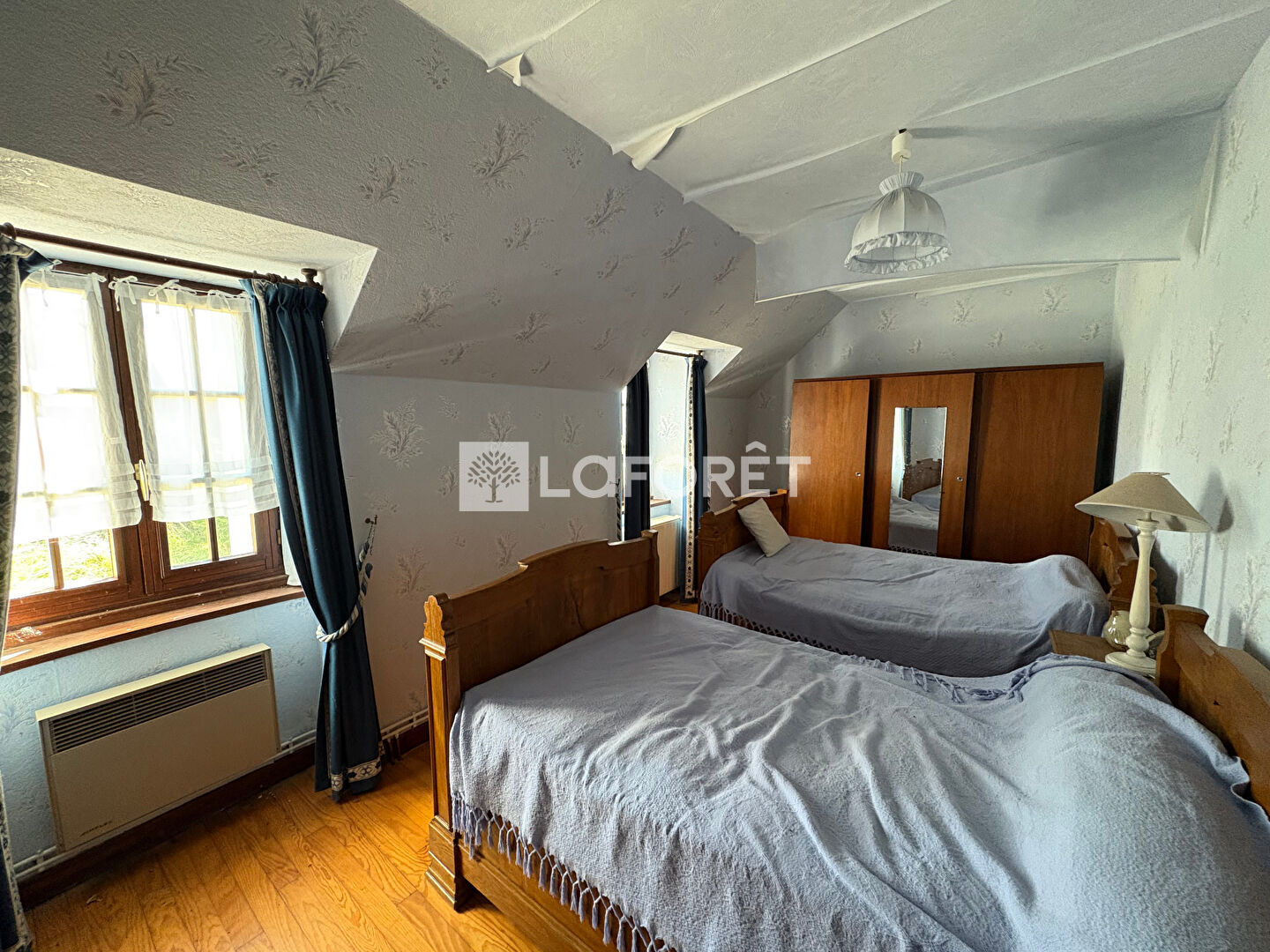 Chauffage fioul + électrique. Menuiseries double vitrage bois.