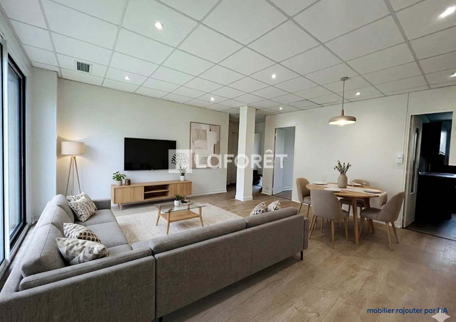 Un séjour lumineux ouvrant sur un balcon.