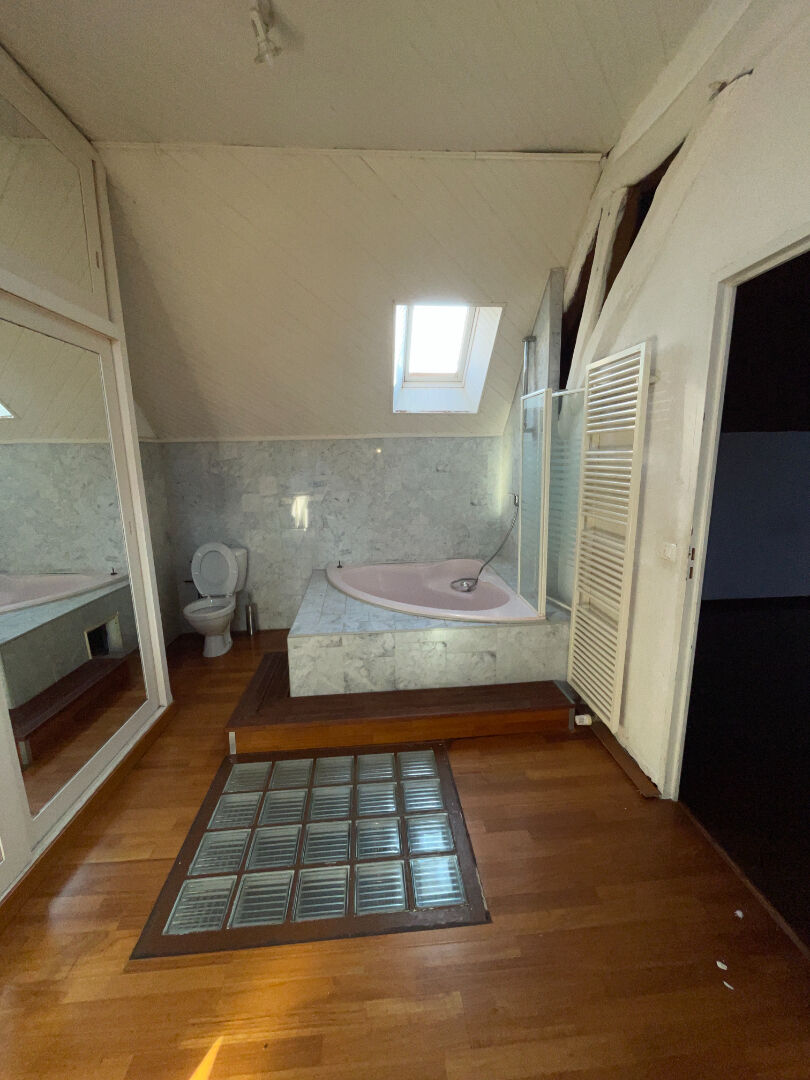 A l'étage, une vaste pièce palière de 30 m² distribue une belle salle de bains avec beaucoup d'attraits, ainsi qu'une mezzanine, idéale pour du stockage.