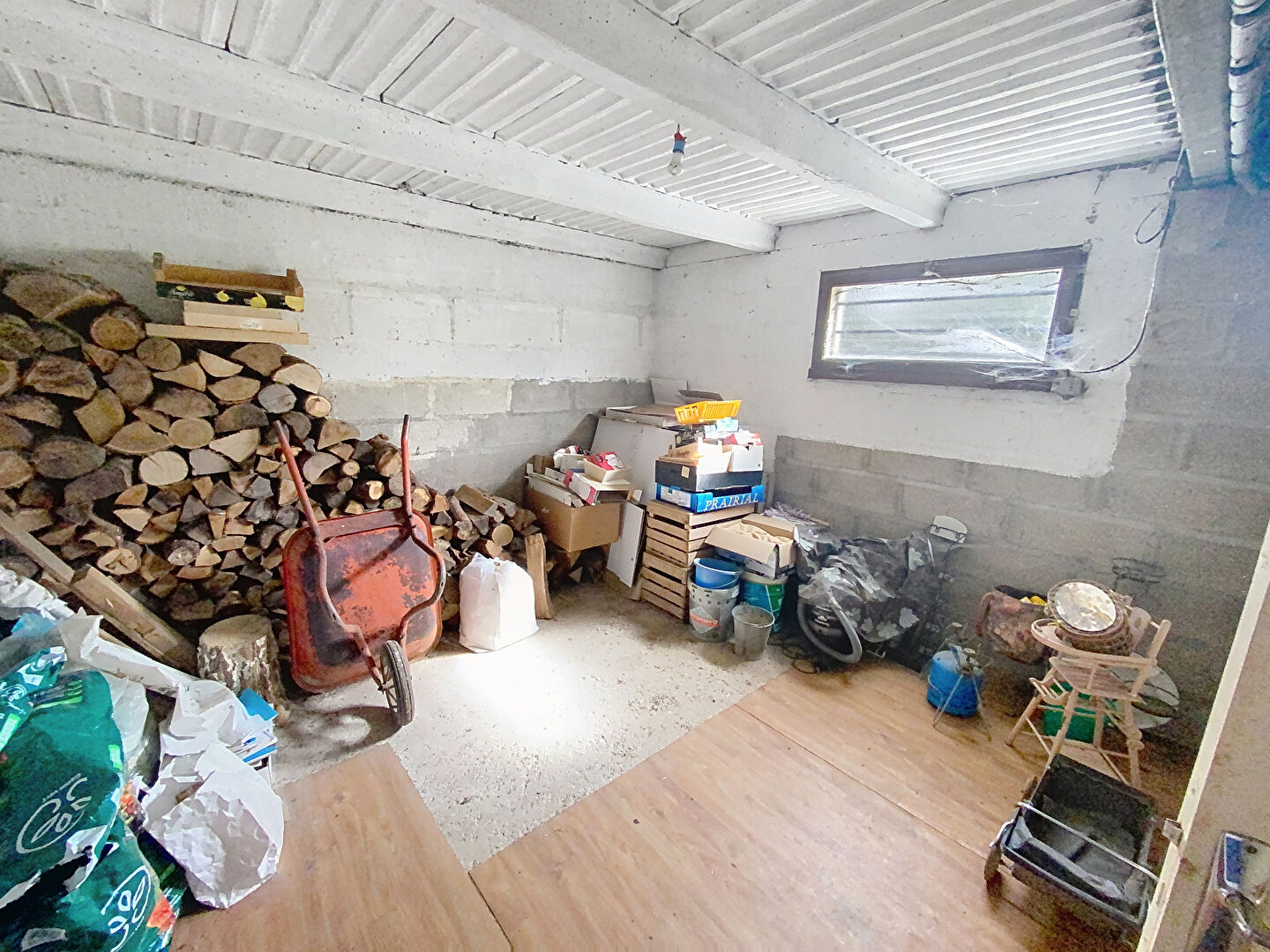 Le sous sol total offre un espace garage, une cuisine d'été et une pièce aménageable.