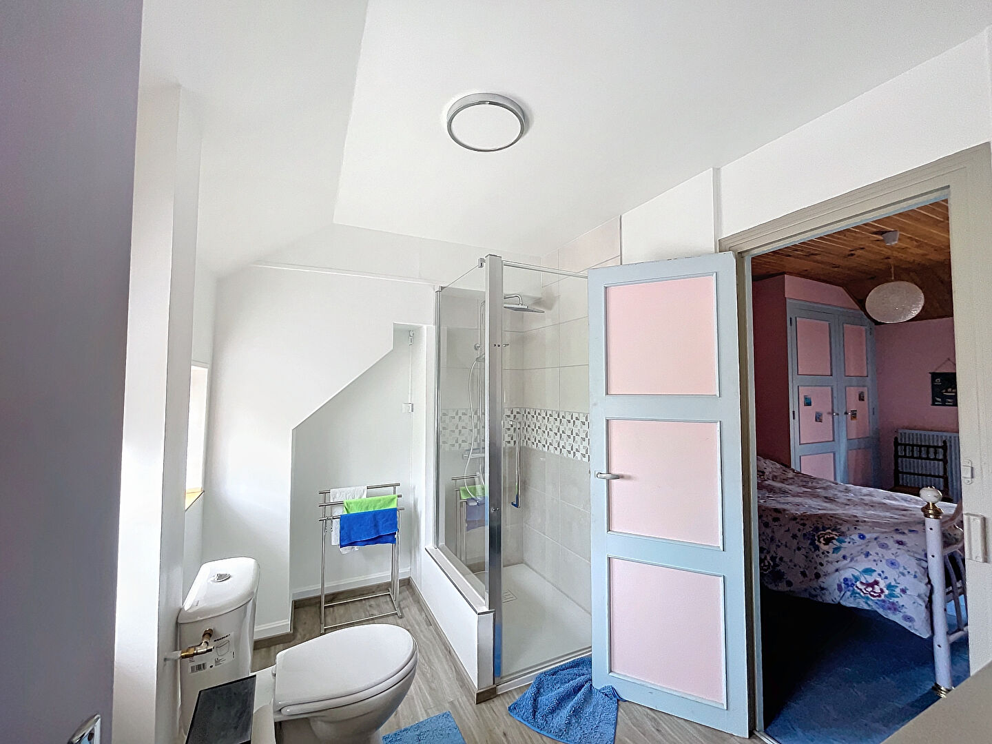 Sur plus de 4000 m² de terrain dont grand verger entretenu, bel ensemble immobilier composé de deux habitations communicantes dont une maison comprenant: véranda, cuisine, cellier,séjour avec poële scandinave, salle de bains avec wc. A l'étage: pièce palière, bureau, deux chambres, salle d'eau avec wc.