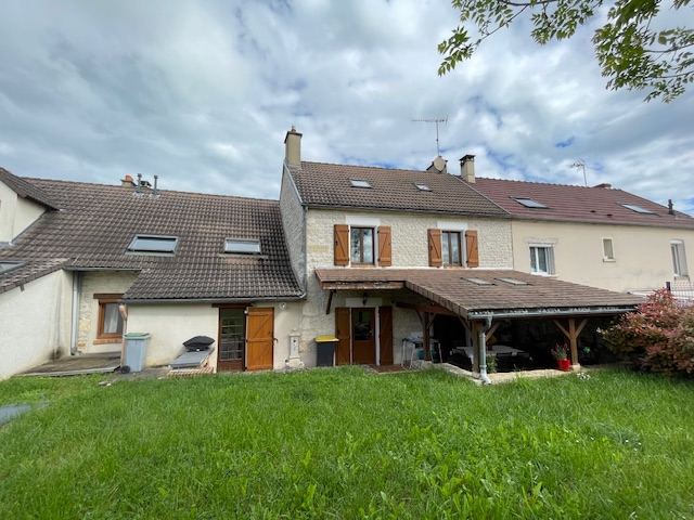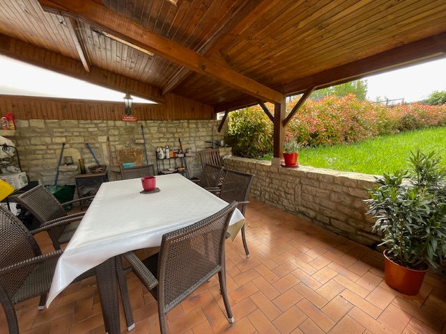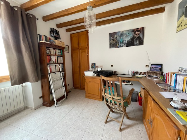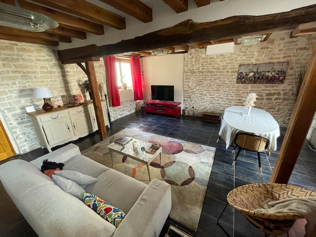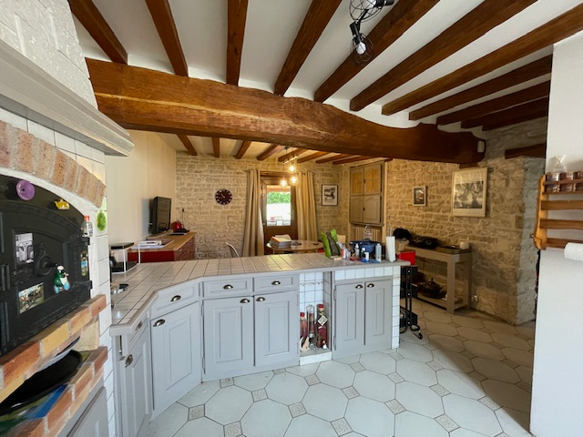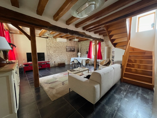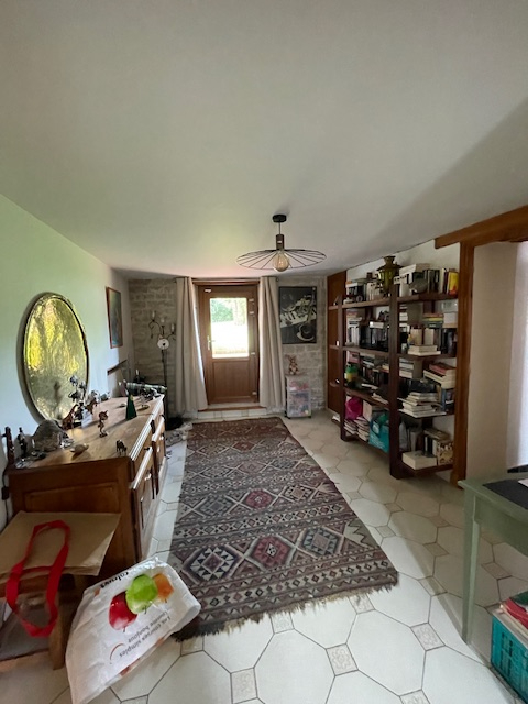 Maison ancienne avec pierres apparentes composée d'une grande entrée, salon/séjour , cuisine aménagée avec espace salle à manger et accès terrasse couverte, salle d'eau/wc. A l'étage: trois chambres, salle de bains / wc. Au 2ème étage : une chambre, salle d'eau, espace dressing.