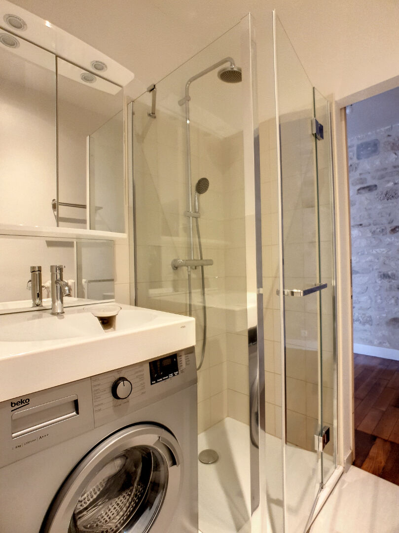 Equipements : four, plaques de cuisson, hotte, lave-linge.