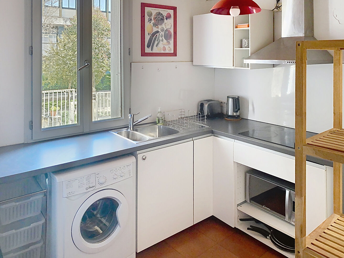 Au premier étage sur trois d'une petite copropriété bénévole sérieusement entretenue: charmant appartement T2 d'une superficie de 42m² vendu loué, bail meublé 1 an en vigueur offrant: séjour, cuisine tous deux exposés EST chambre, salle d'eau+wc.