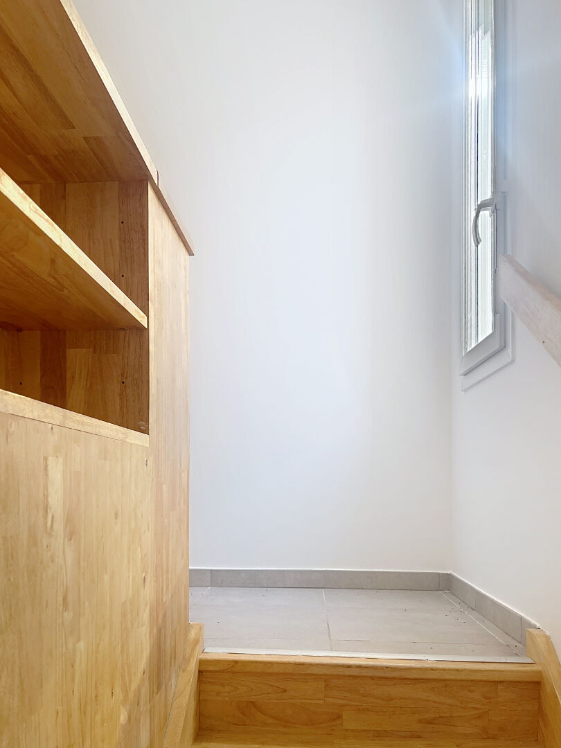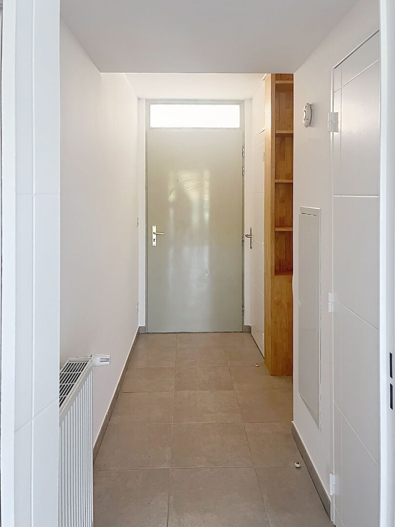 Un halle d'entrée, une cuisine entièrement aménagée, s'ouvrant sur le salon, un wc, un petit jardin de 28 m2
