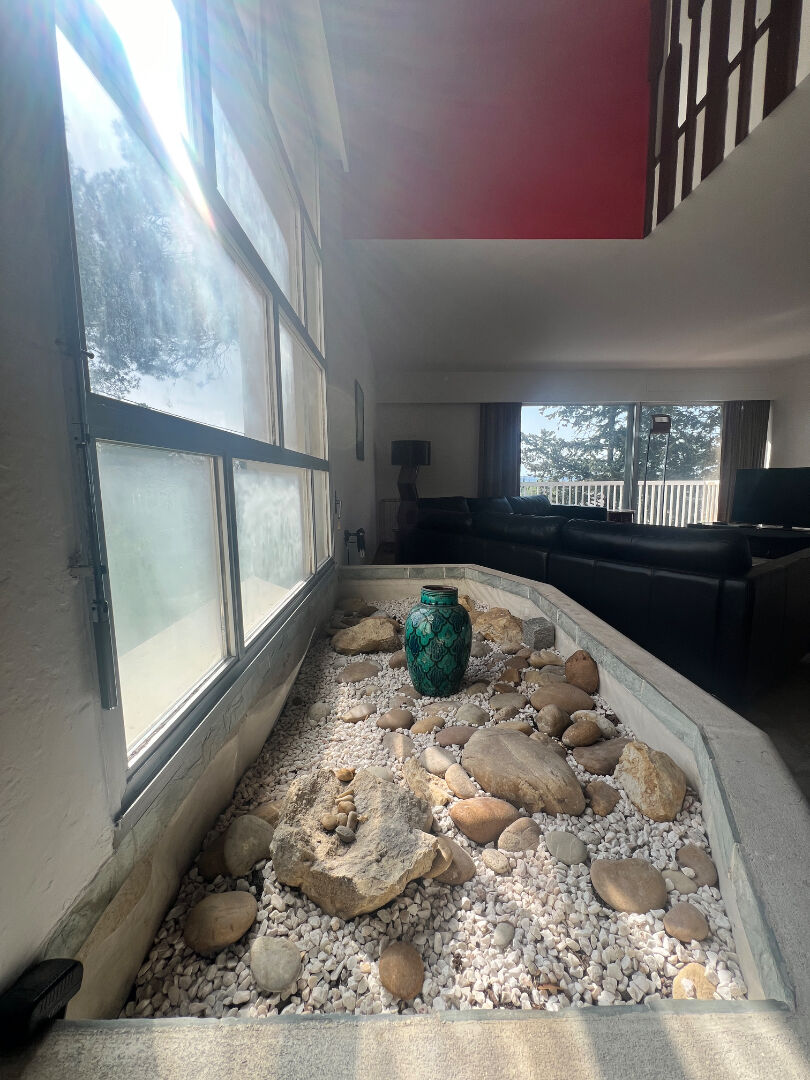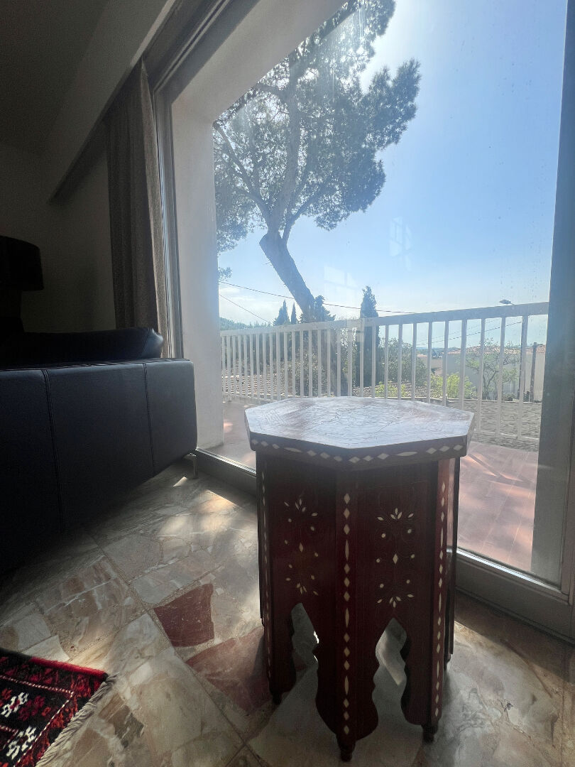 Jolie maison d'architecte non mitoyenne des années 1970 surplombant quartier résidentiel tranquille, vue agréable.