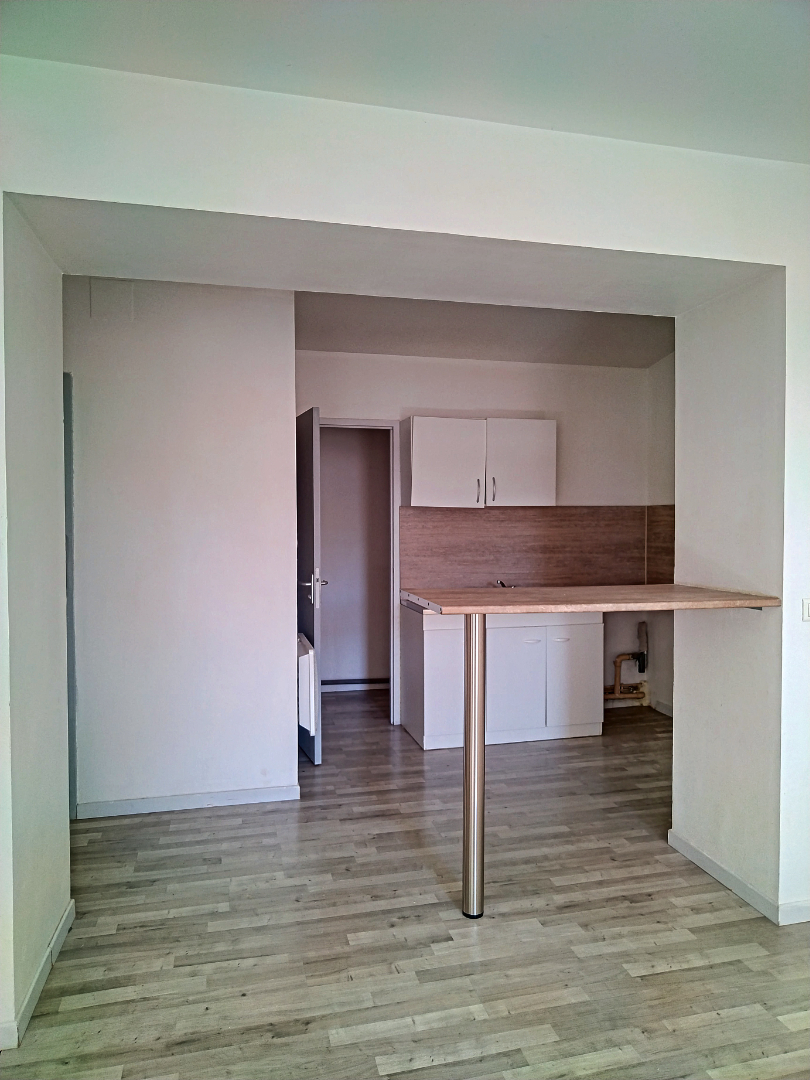 L'appartement se trouve au premier et dernier étage, garantissant tranquillité et intimité. La pièce de vie principale, lumineuse et chaleureuse, offre un bel espace pour aménager un salon confortable et un coin repas. La cuisine ouverte, déjà aménagée, permet de cuisiner au quotidien dans de bonnes conditions. Une arrière-cuisine vient compléter l'ensemble pour davantage de fonctionnalité et de rangement.