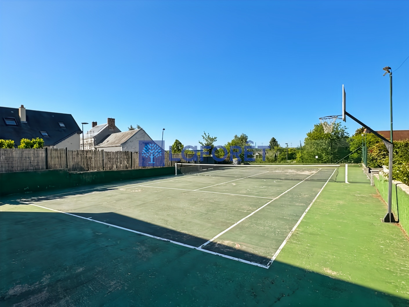 Jardin avec piscine chauffée sécurisée et terrain tennis agréable pour profiter des beaux jours.