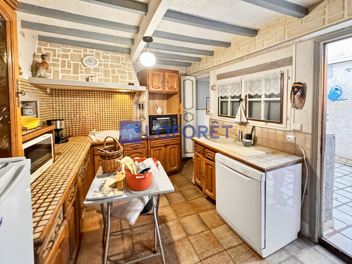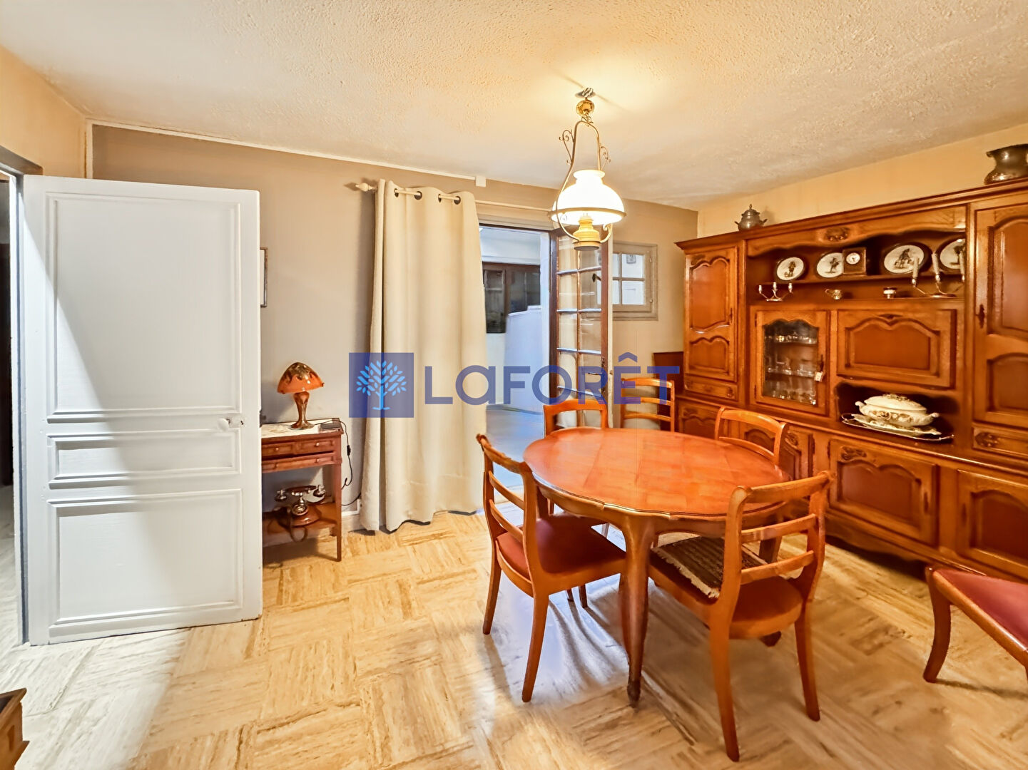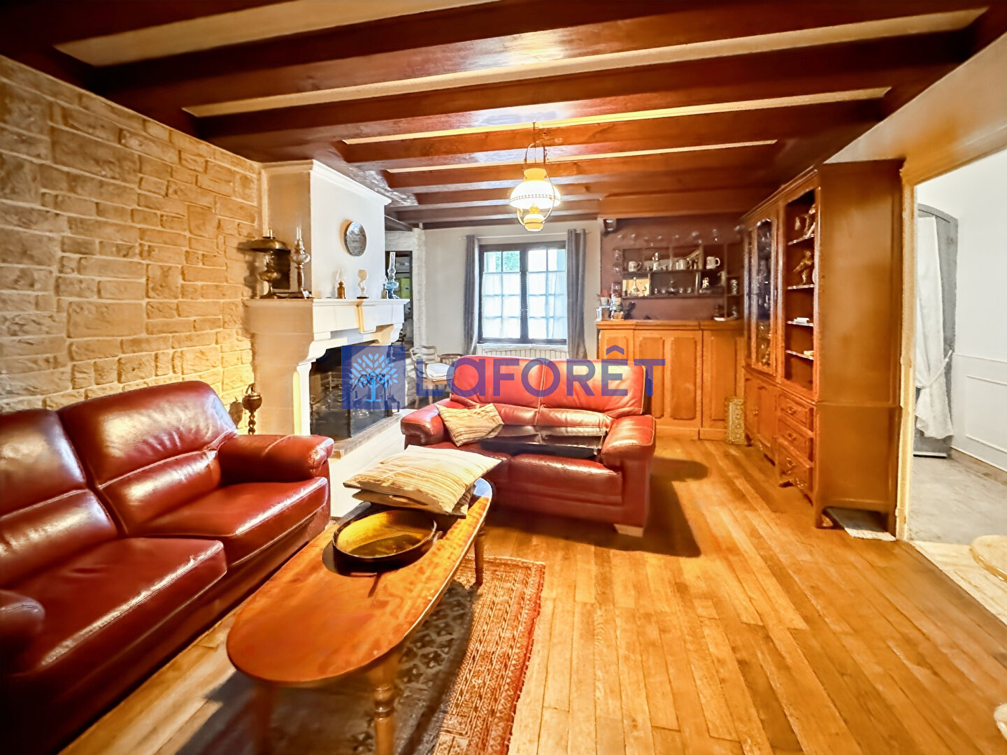 Surface habitable de 94 m² composée d'un salon chaleureux avec cheminée, une salle à manger, une cuisine indépendante un wc.