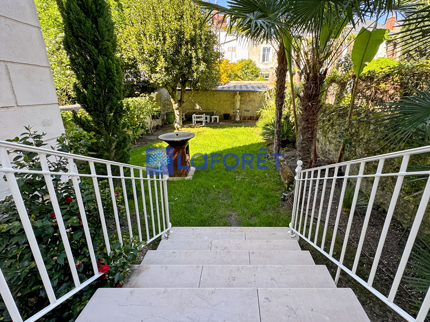 Un accès direct sur la terrasse qui mène vers un jardin arboré et clos de 220 m², véritable écrin de verdure en plein centre-ville.