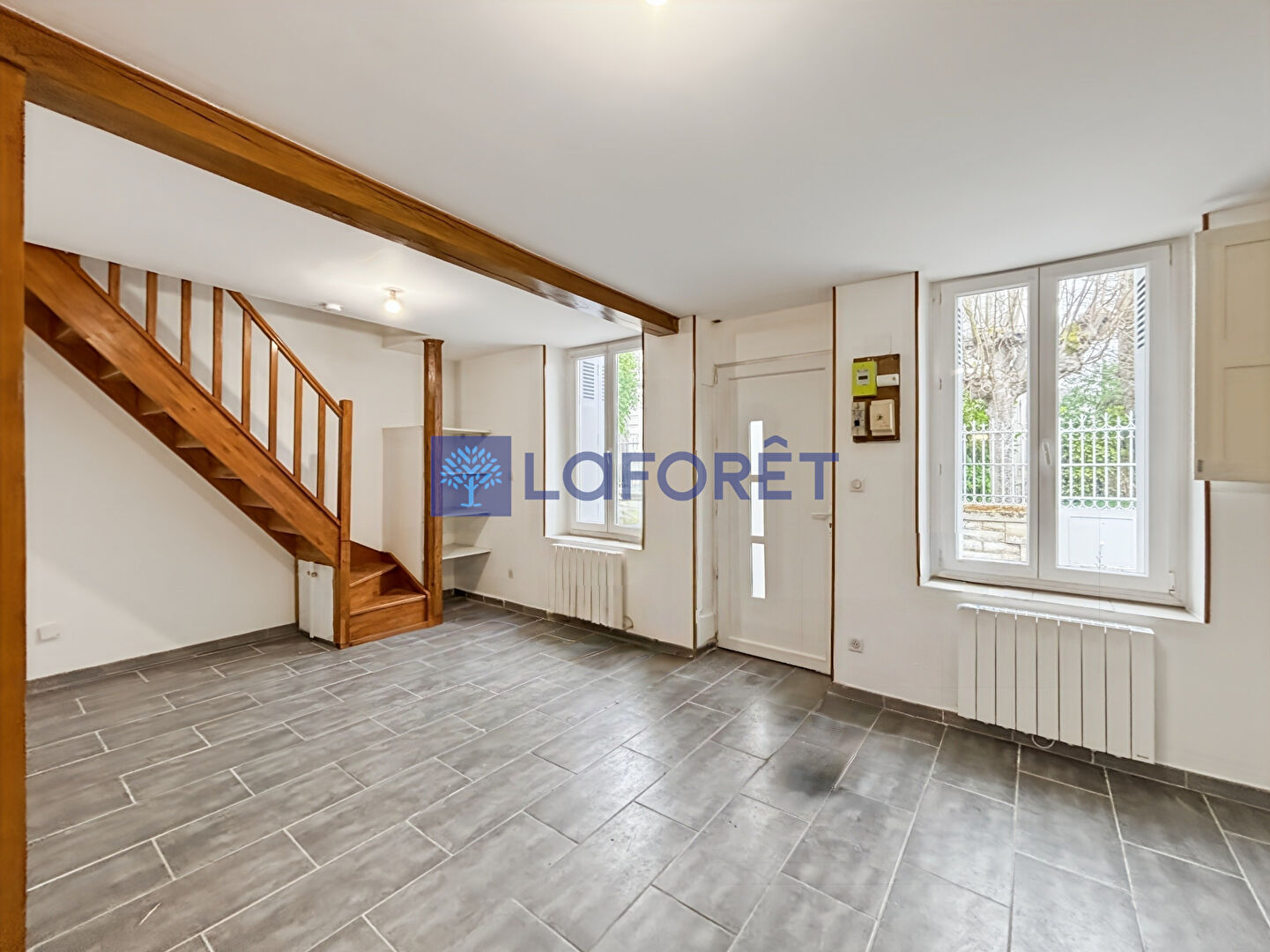 Les menuiseries en double vitrage PVC et les volets bois assurent confort et isolation.