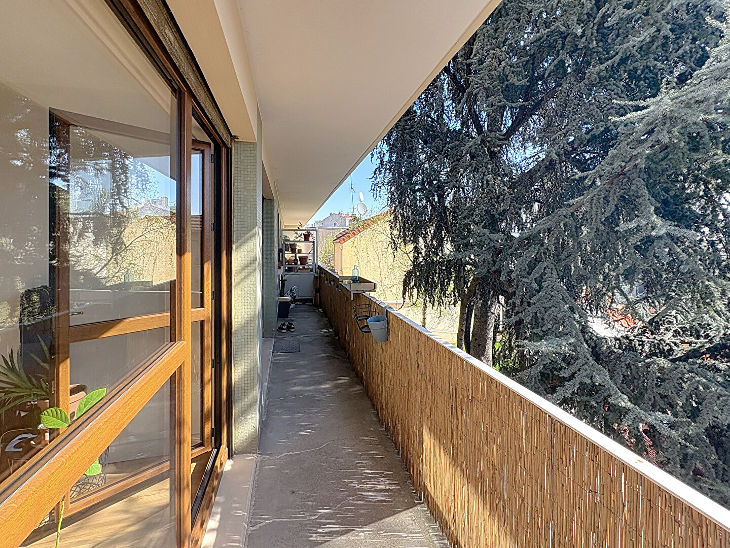 - Le balcon offrant un cadre verdoyant et parfaitement exposé au soleil.