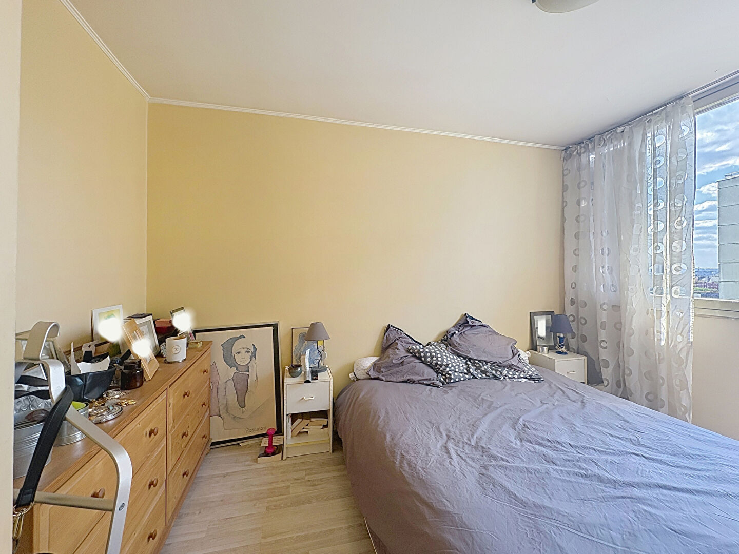 Cet appartement lumineux bénéficie d'une vue dégagée, avec un ensoleillement optimal tout au long de la journée. Situé au 13ème étage d'une copropriété parfaitement tenue avec ascenseurs et gardien, il baigne de luminosité.