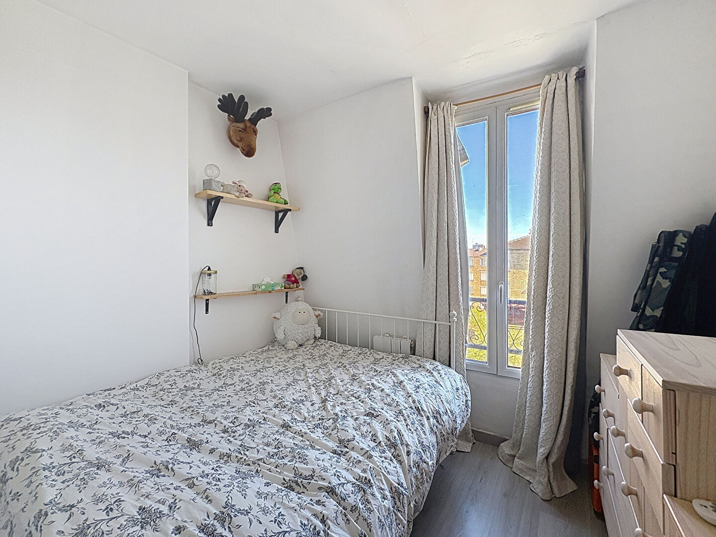 Situé au cinquième et dernier étage d'une copropriété des années 30 bien entretenue, à taille humaine, avec cour végétalisée et espace vélos, l'appartement baigne de luminosité par sa vue pleinement dégagée et son exposition Est.
