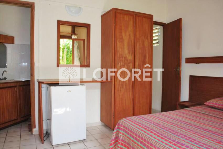 Un bungalow de type 2 à rafraichir pouvant accueillir jusqu'à 4 personnes comprenant une chambre avec 1 lit , un séjour équipé d'un brasseur d'air, une salle d'eau avec douche, une kitchenette sur la terrasse. En extérieur , vous trouverez une grande salle de réception disponible pour l'organisation d'événements, ce qui est idéal pour les locations saisonnières ou activités touristiques.