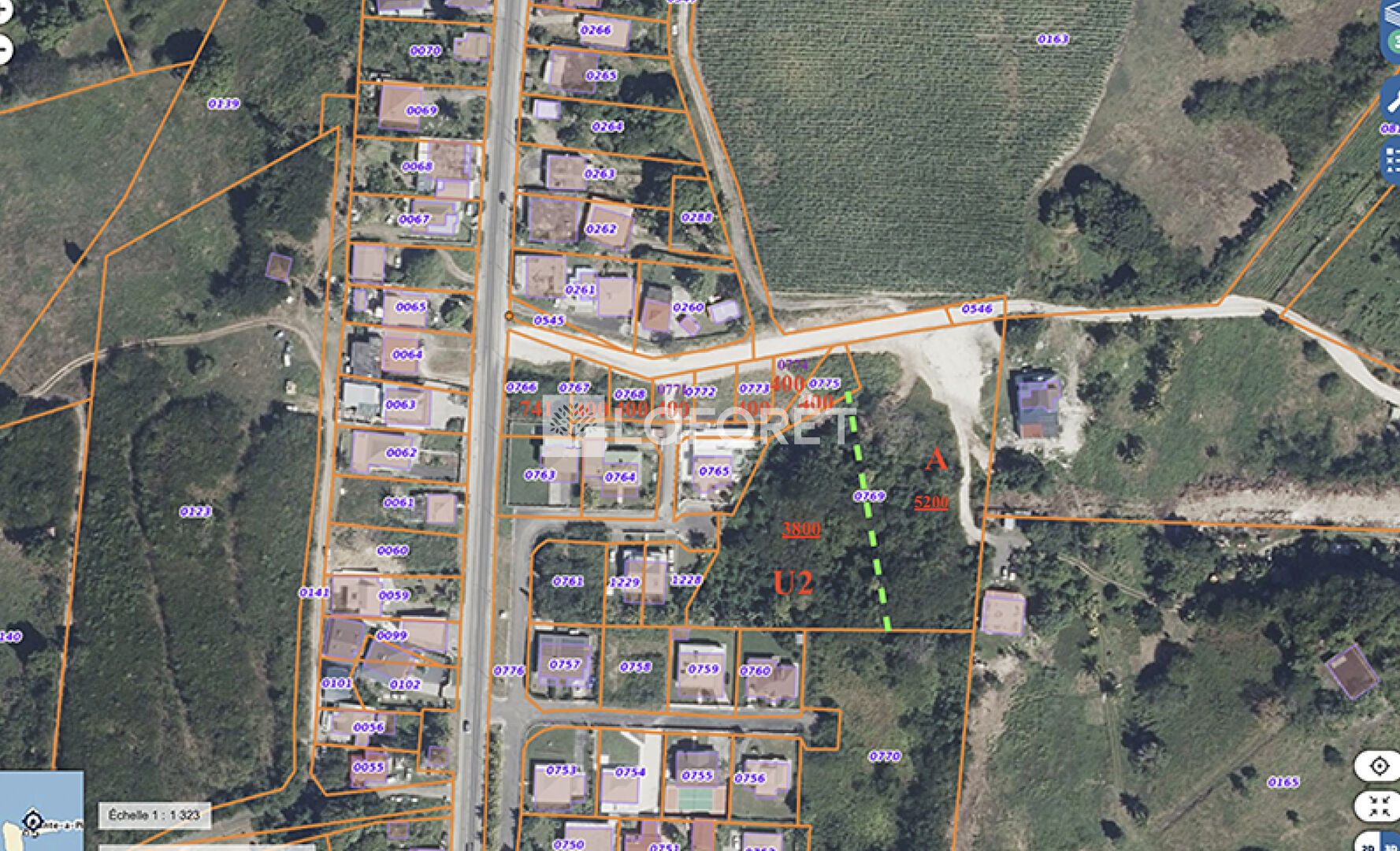 Le lotissement se compose de six terrains viabilisés de 400 m² chacun au prix de 77 000 €, d'un terrain viabilisé de 741 m² au prix de 132 000 €, ainsi que d'un grand terrain, viabilisation proche, de 9 067 m² dont 3 800 m² environ sont constructibles et 5 200 m² en zone agricole, proposé à 283 400 €.