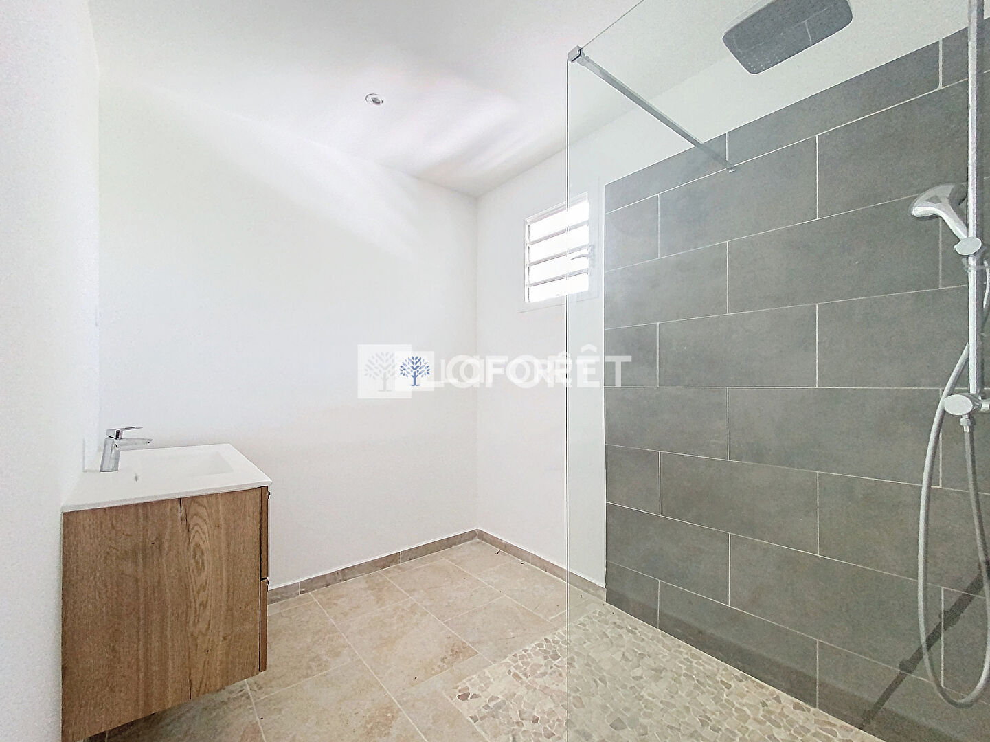 Cet appartement est composé de 2 chambres climatisées avec 2 salles d'eau moderne et d'un espace séjour en rotonde donnant sur une magnifique vue mer . L'espace cuisine reste à aménager à votre gout. La terrasse couverte de 9,90 m² vous permet de profiter de la vue mer et des alizés.